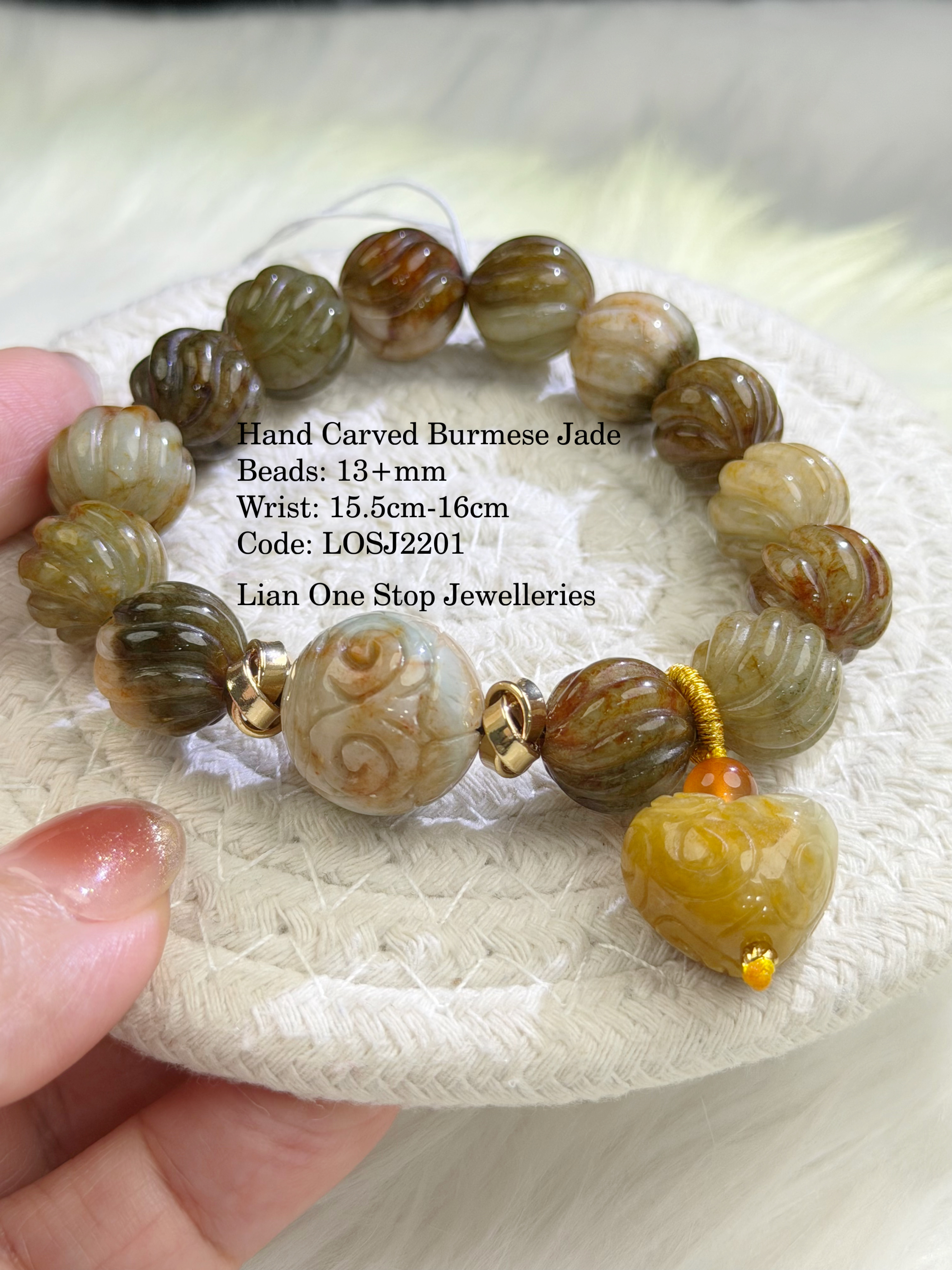 Code: LOSJ2201 Hand Carved Burmese Jade 13+mm
