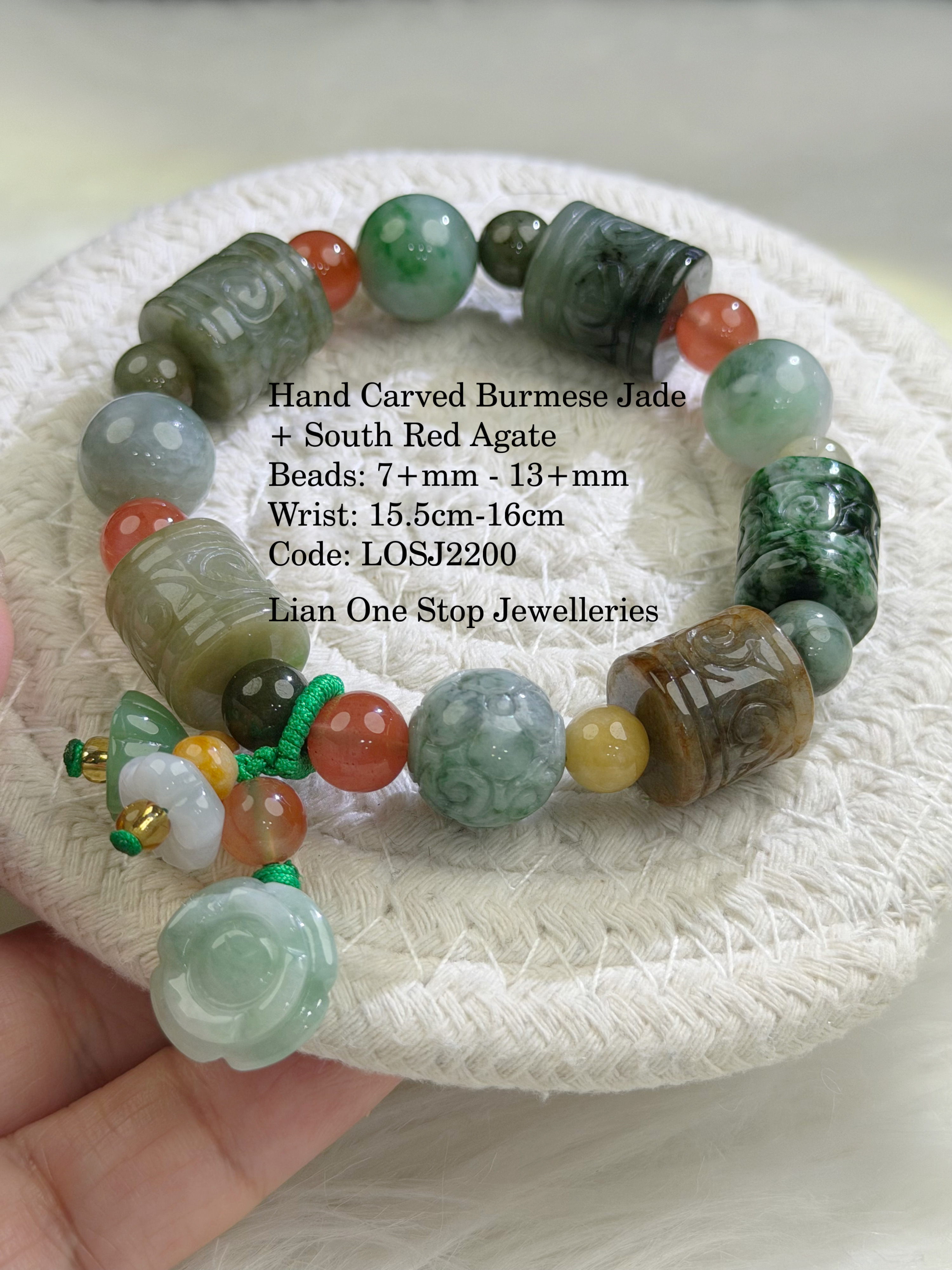 Code: LOSJ2200 Hand Carved Burmese Jade + South Red Agate
