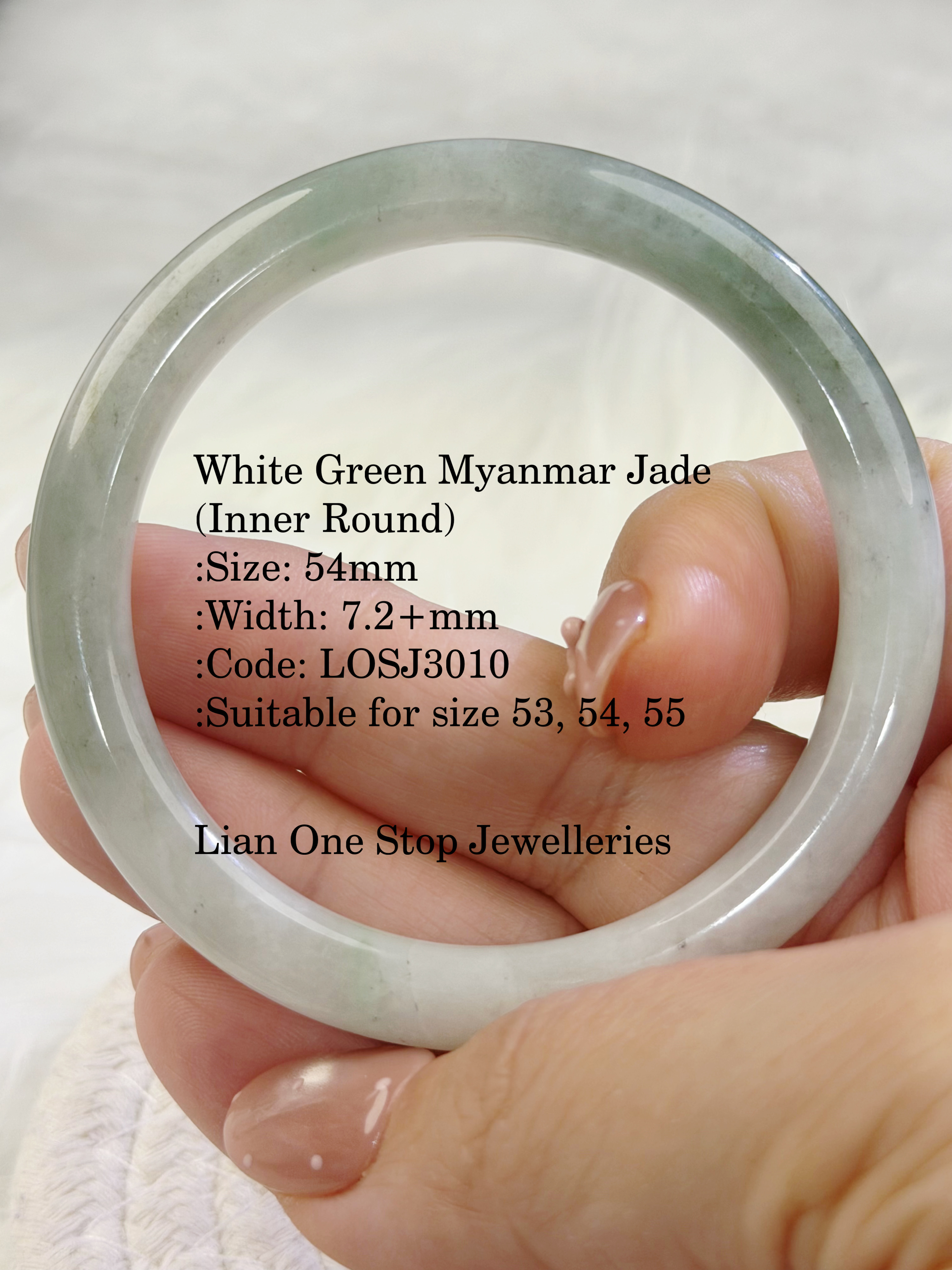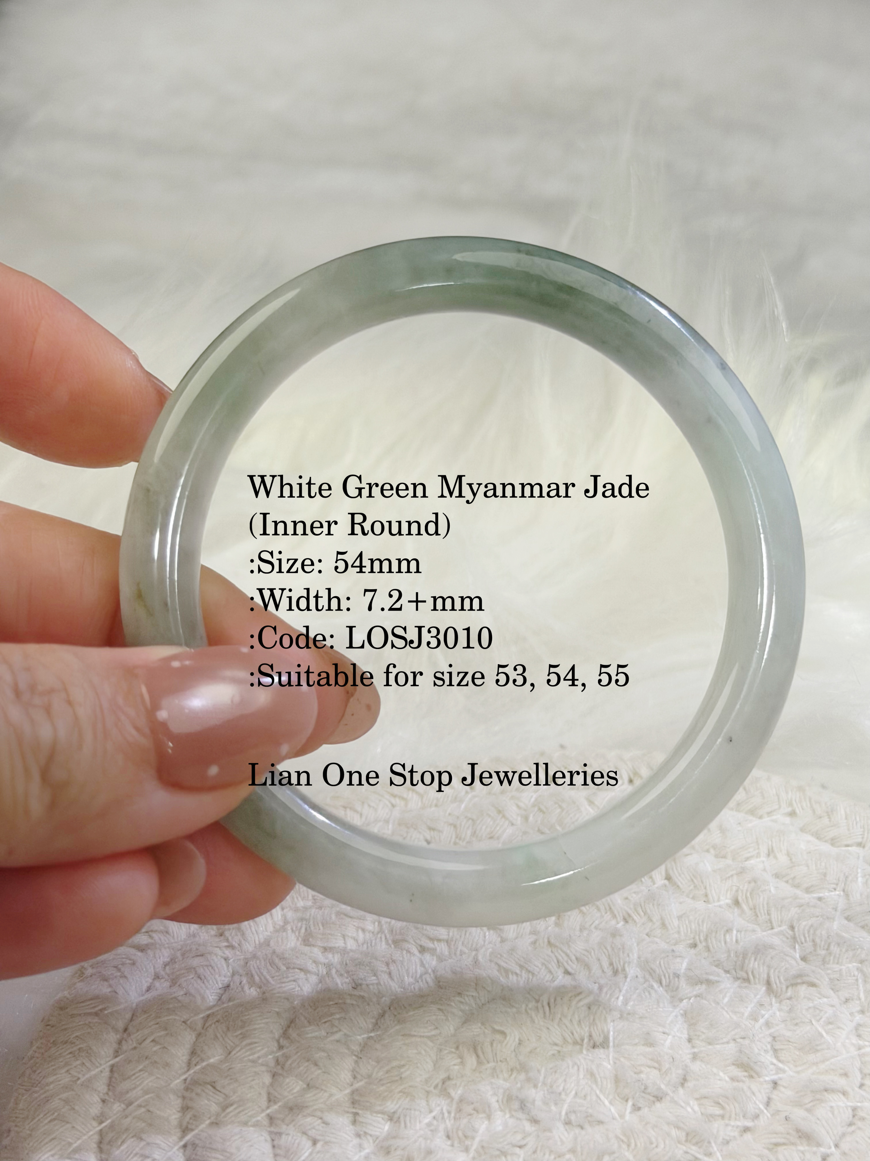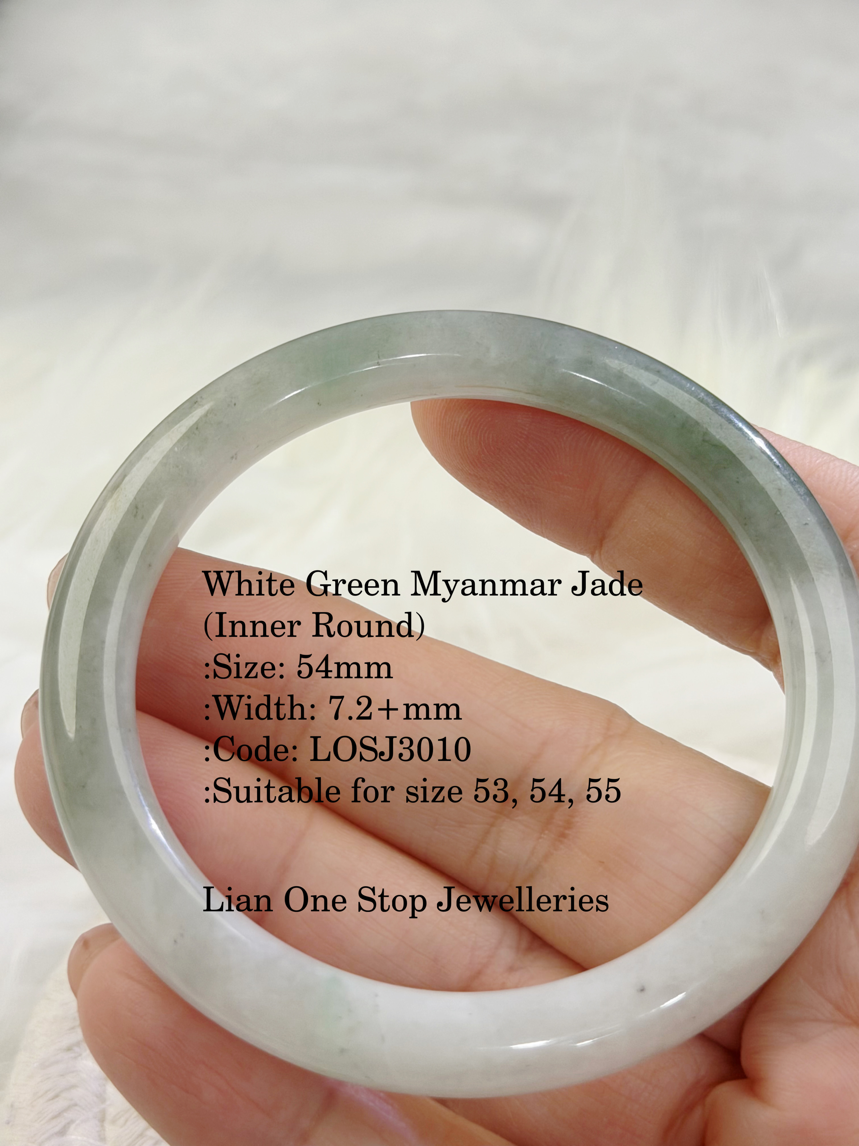 White Green Myanmar Jade (Inner Round) :Size: 54mm :Width: 7.2+mm :Code: LOSJ3010 :Suitable for size 53, 54, 55