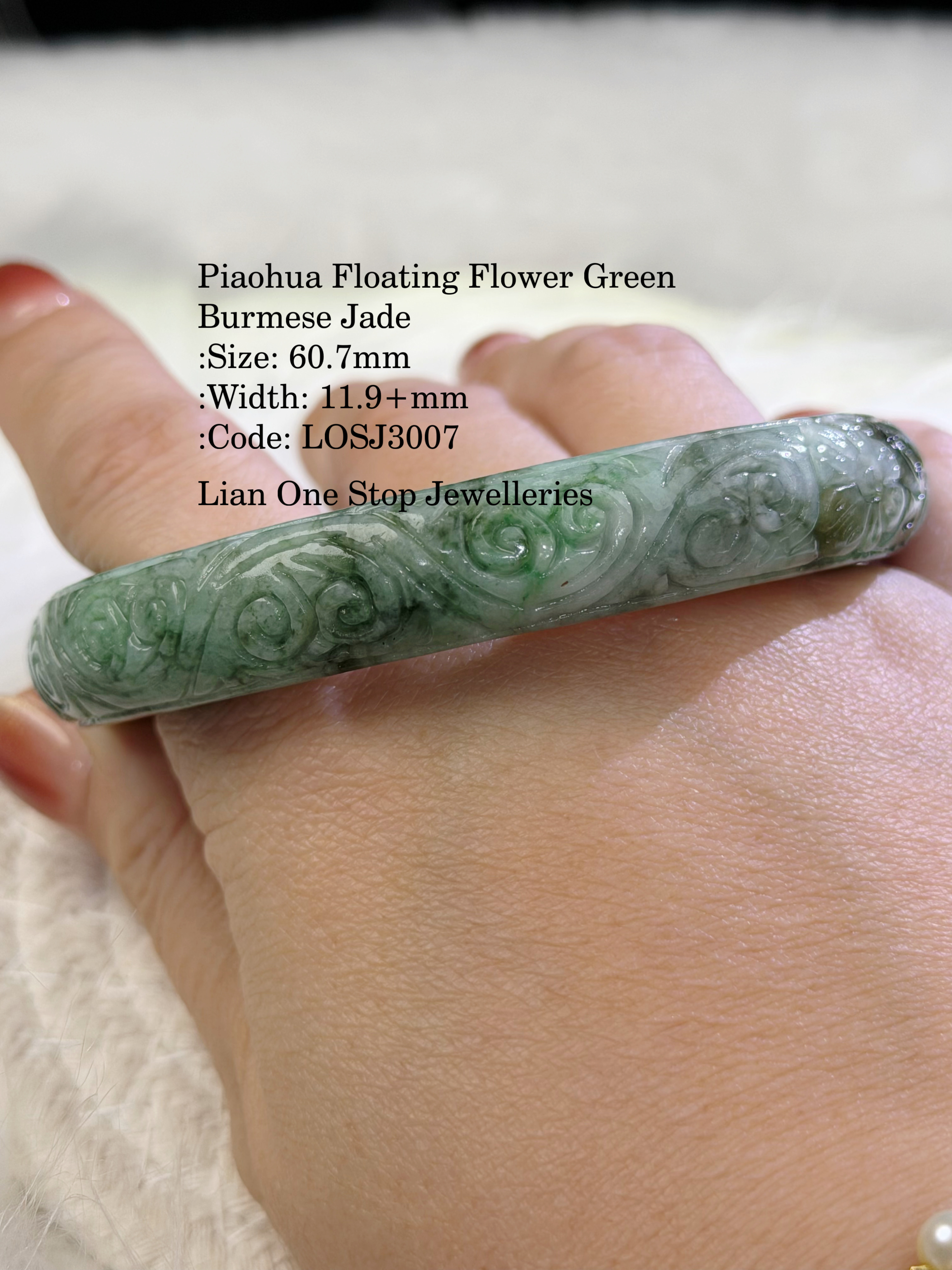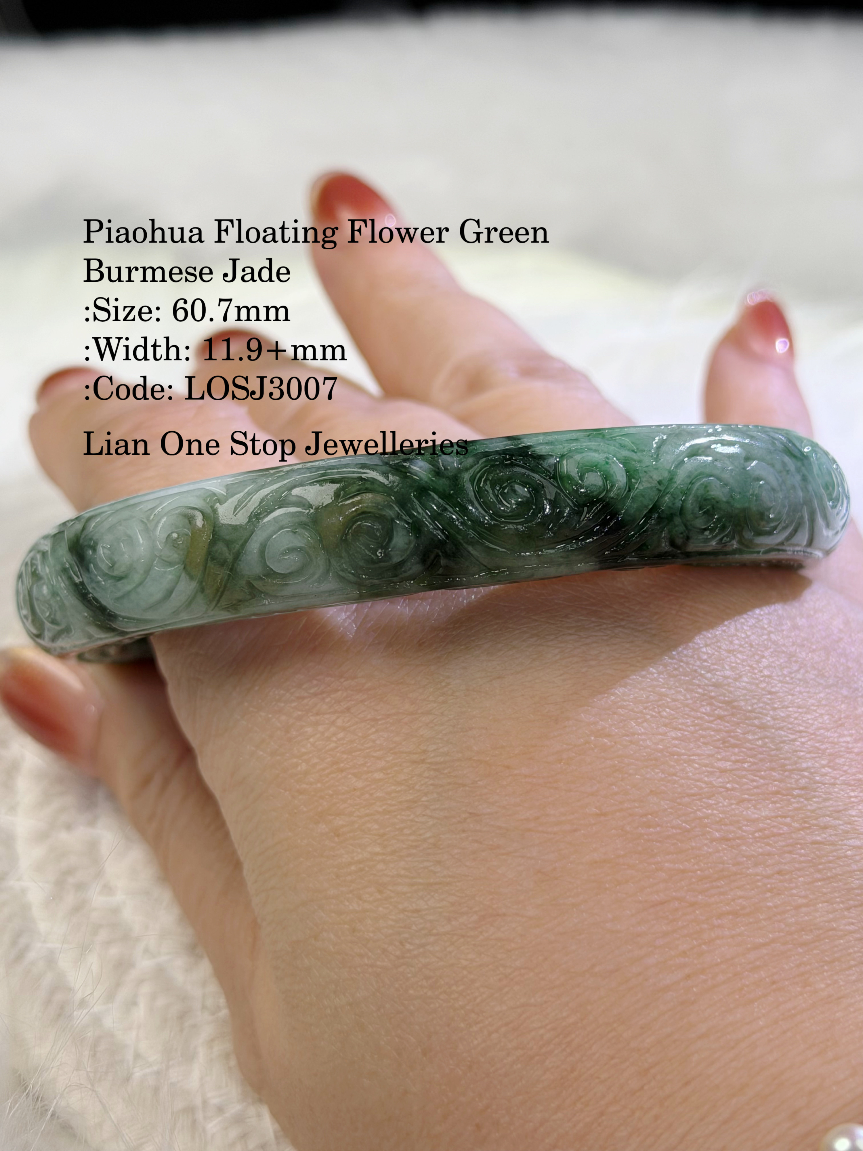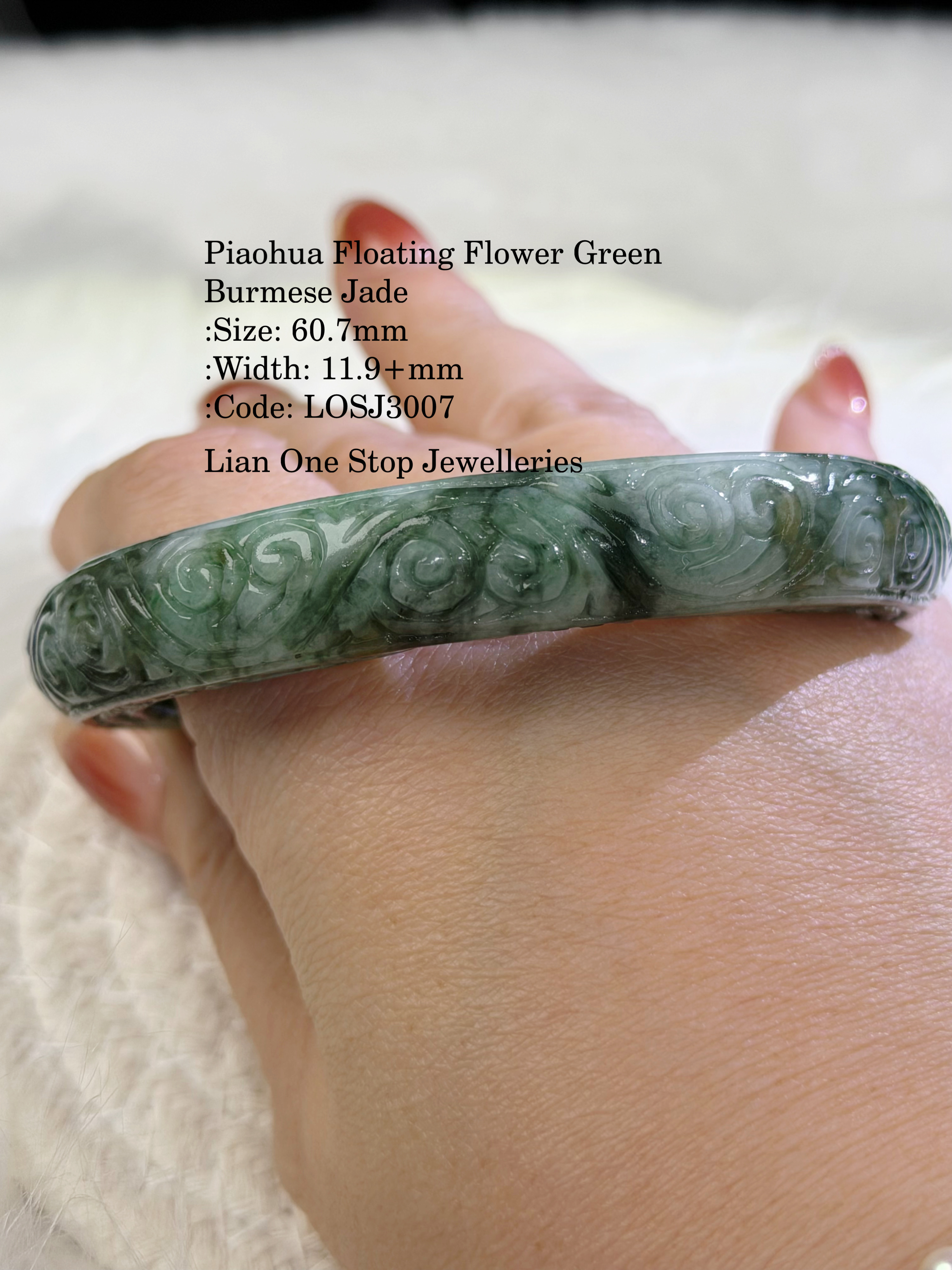 Piaohua Floating Flower Green Burmese Jade :Size: 60.7mm :Width: 11.9+mm :Code: LOSJ3007 :Suitable for size 60, 61