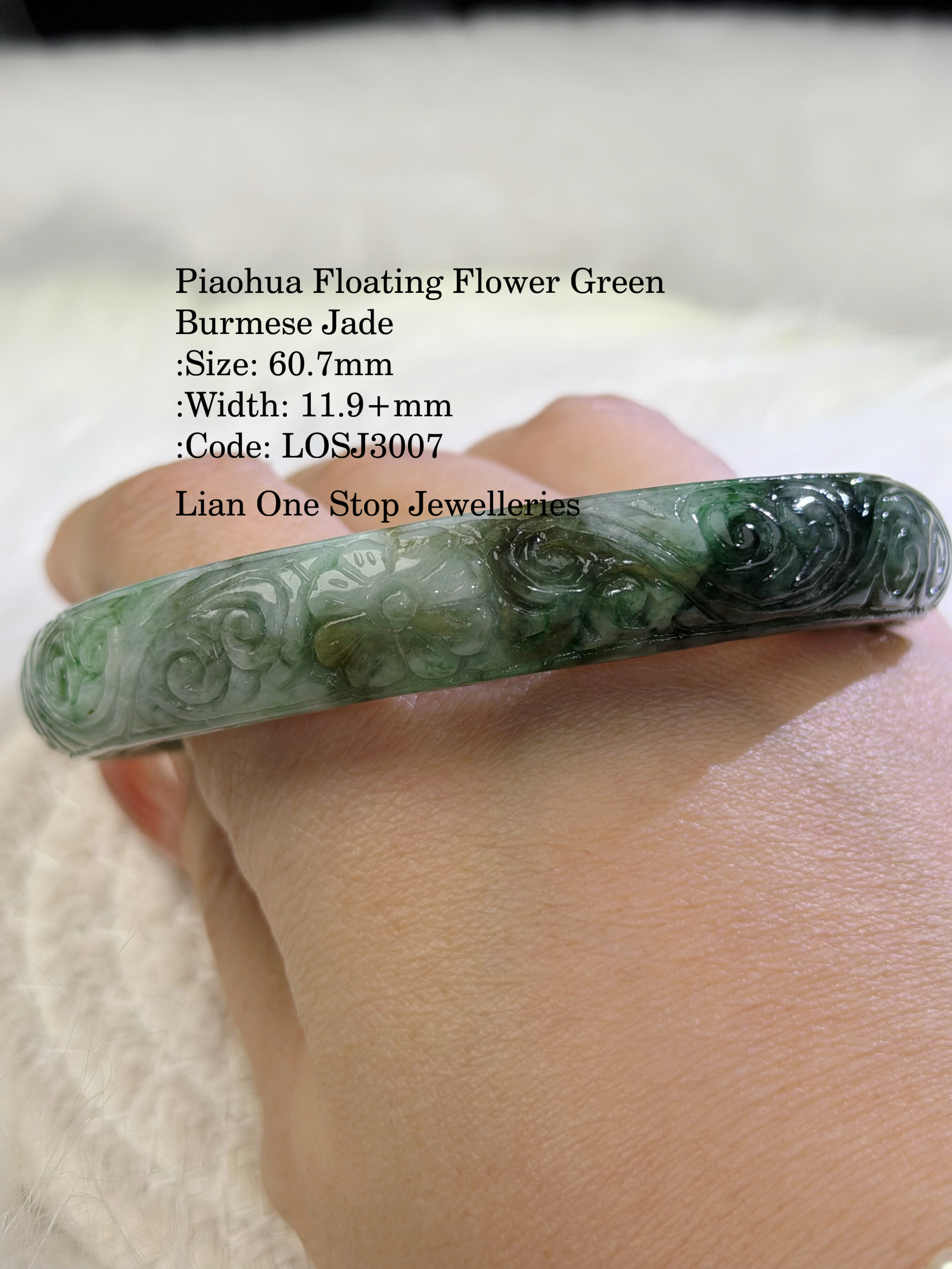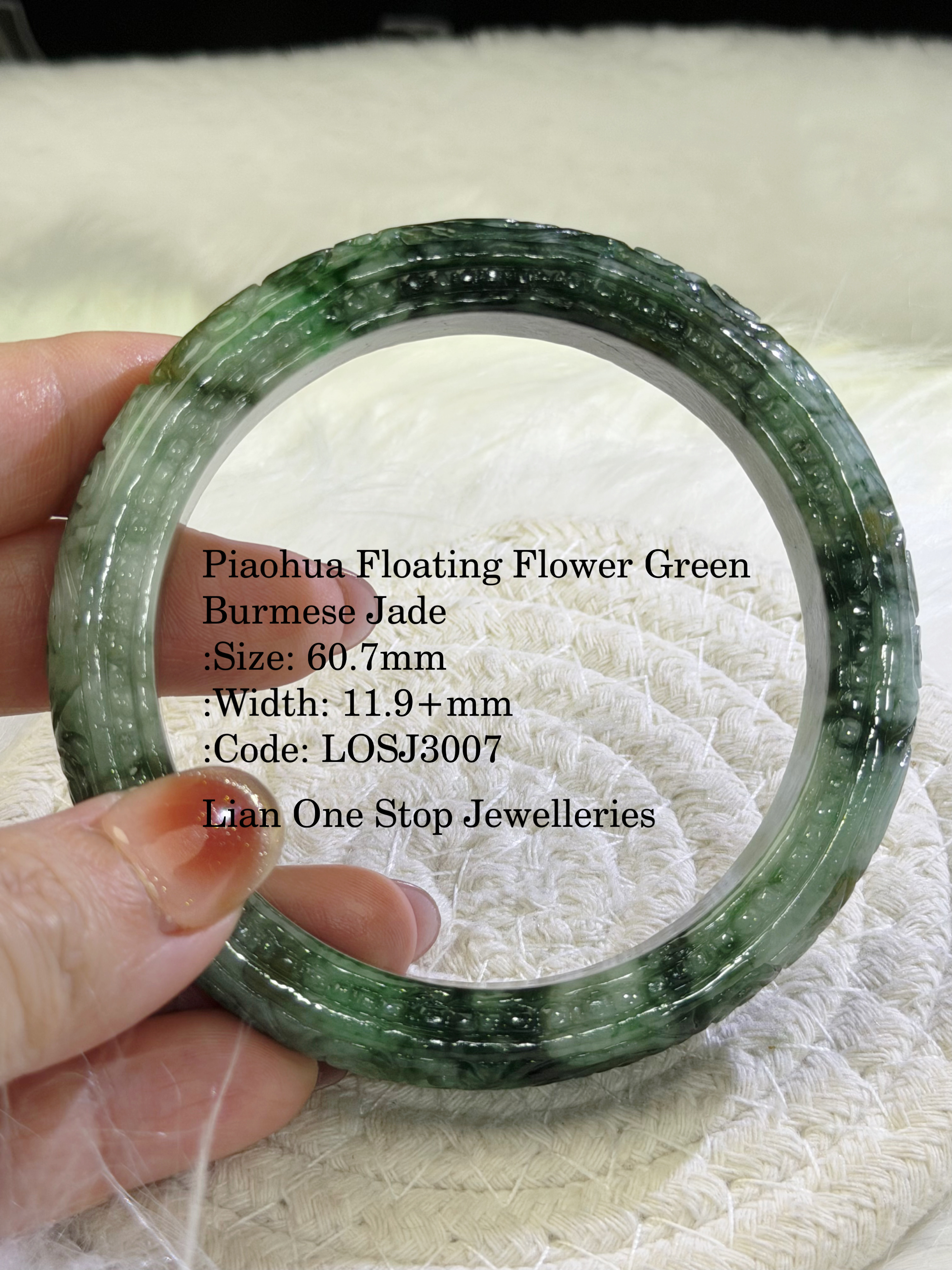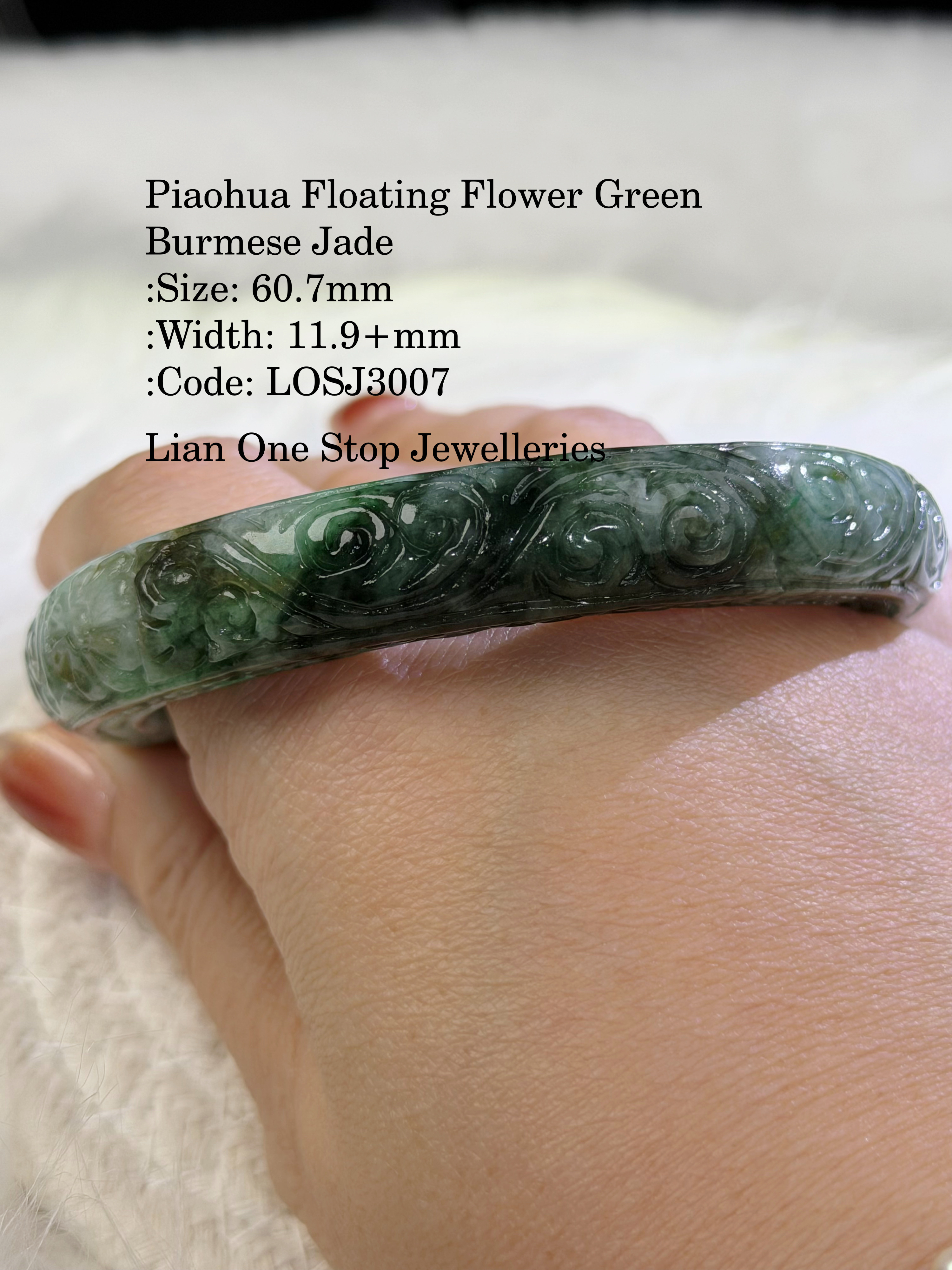 Piaohua Floating Flower Green Burmese Jade :Size: 60.7mm :Width: 11.9+mm :Code: LOSJ3007 :Suitable for size 60, 61