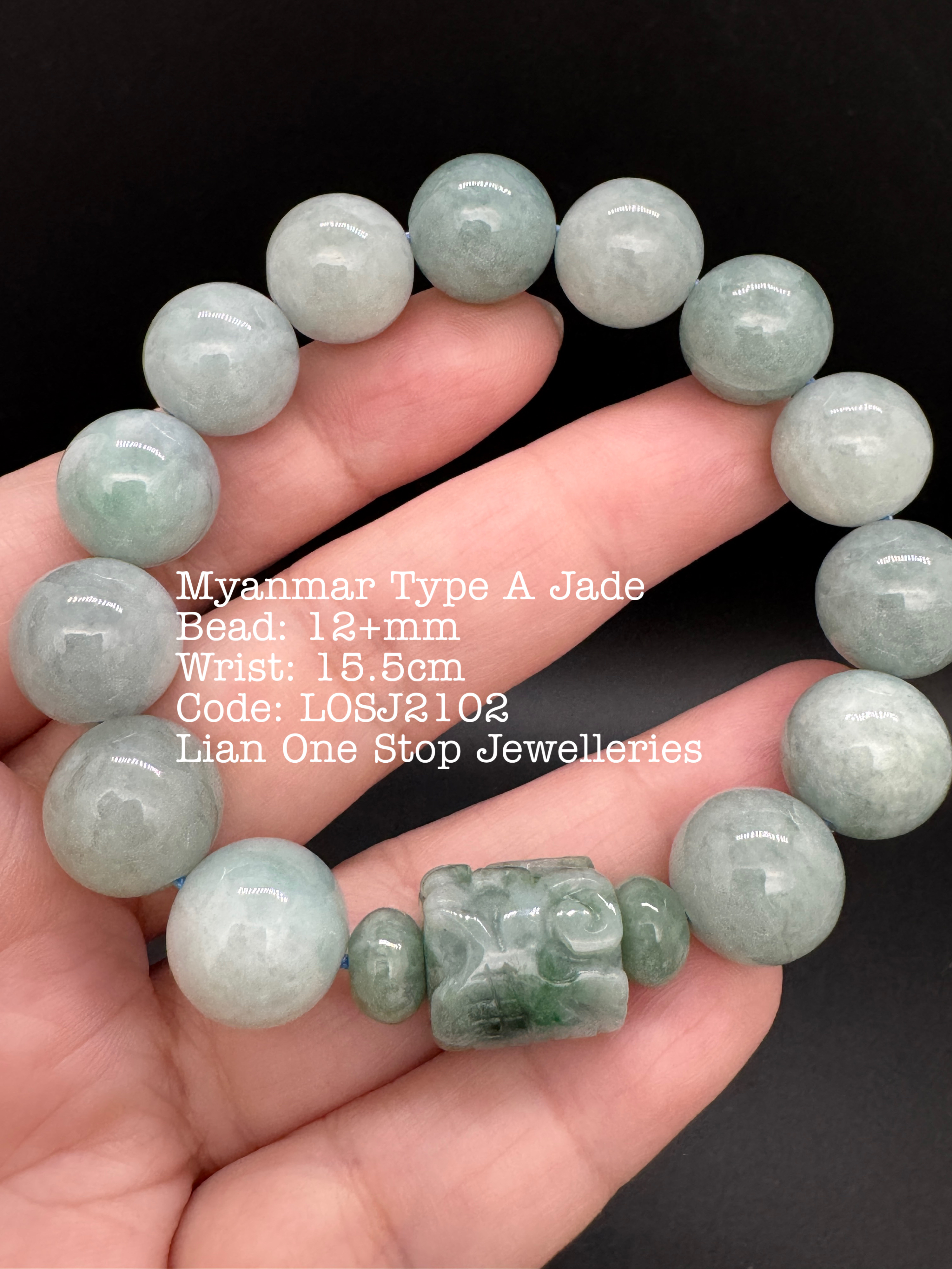 Myanmar Type A Jade Bead: 12+mm Wrist: 15.5cm Code: LOSJ2102