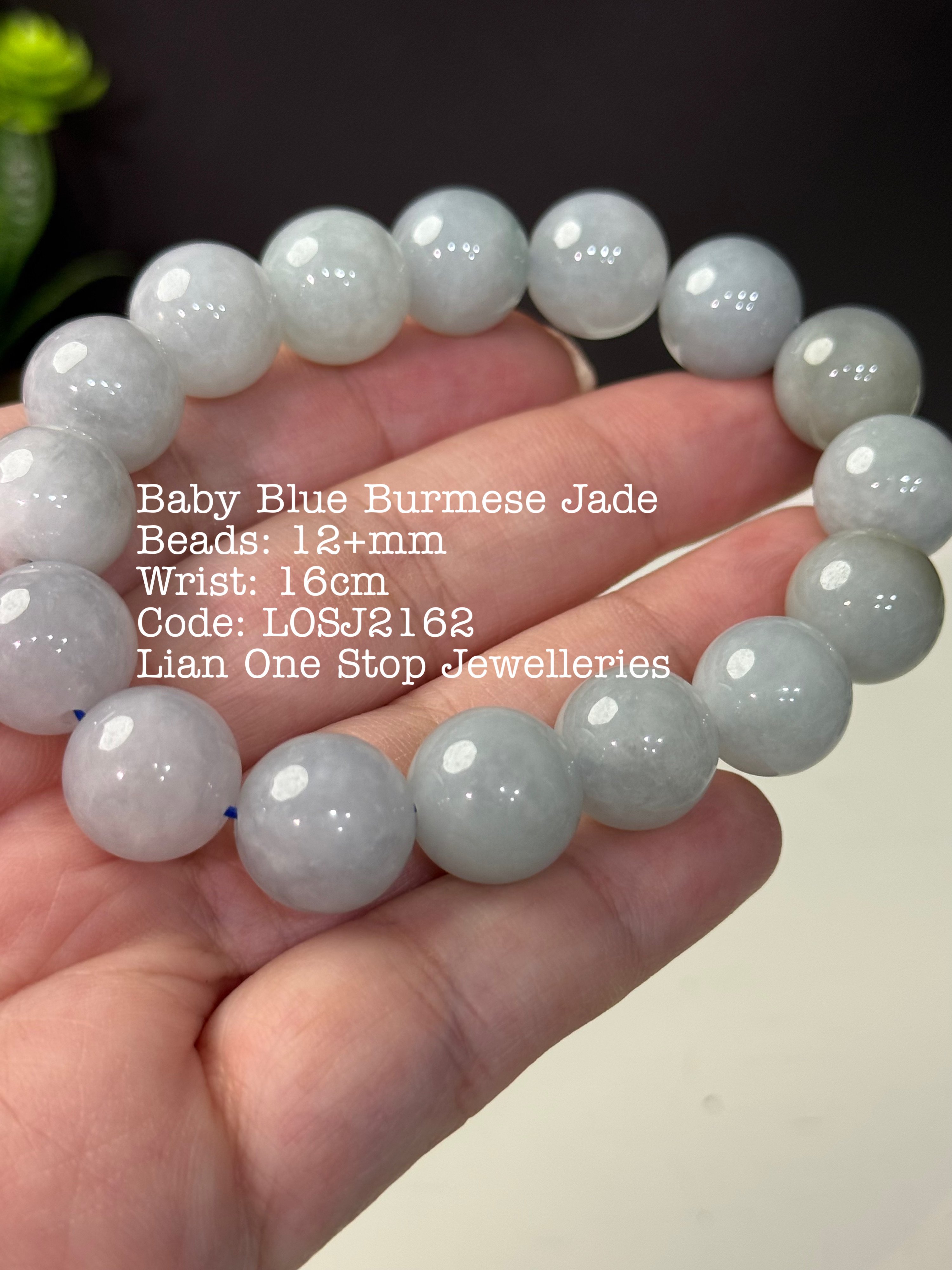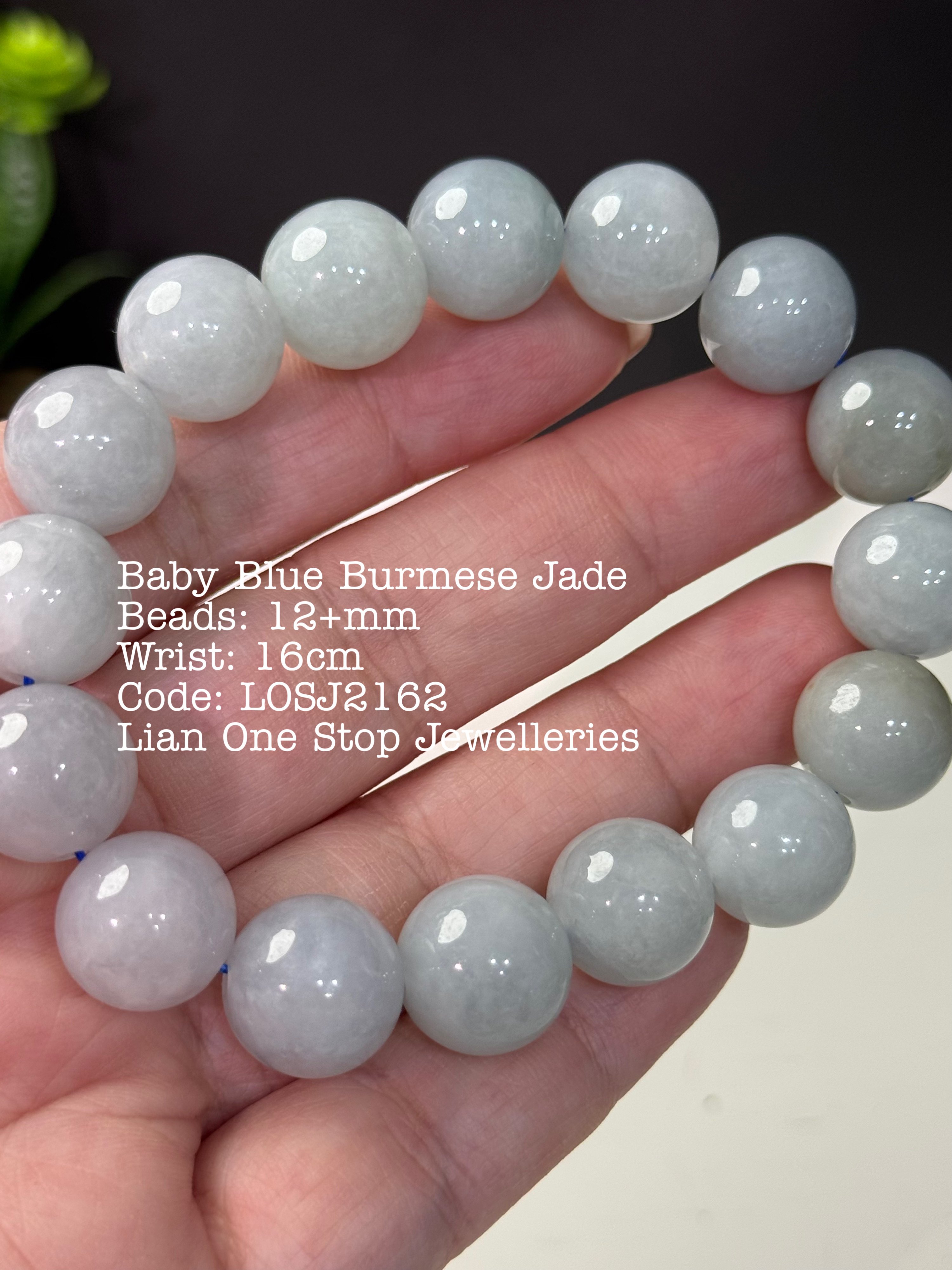 Baby Blue Burmese Jade Beads: 12+mm Wrist: 16cm Code: LOSJ2162