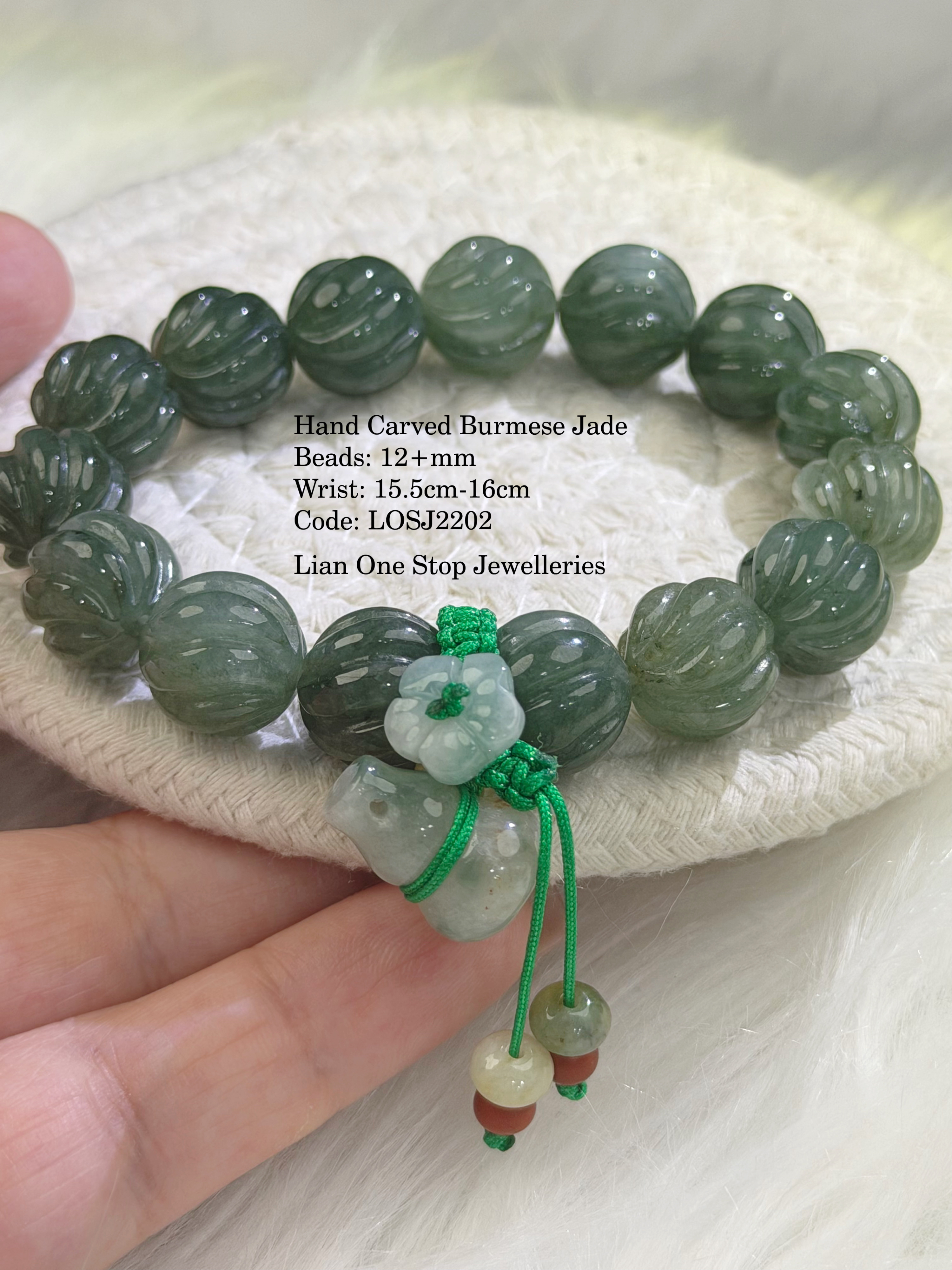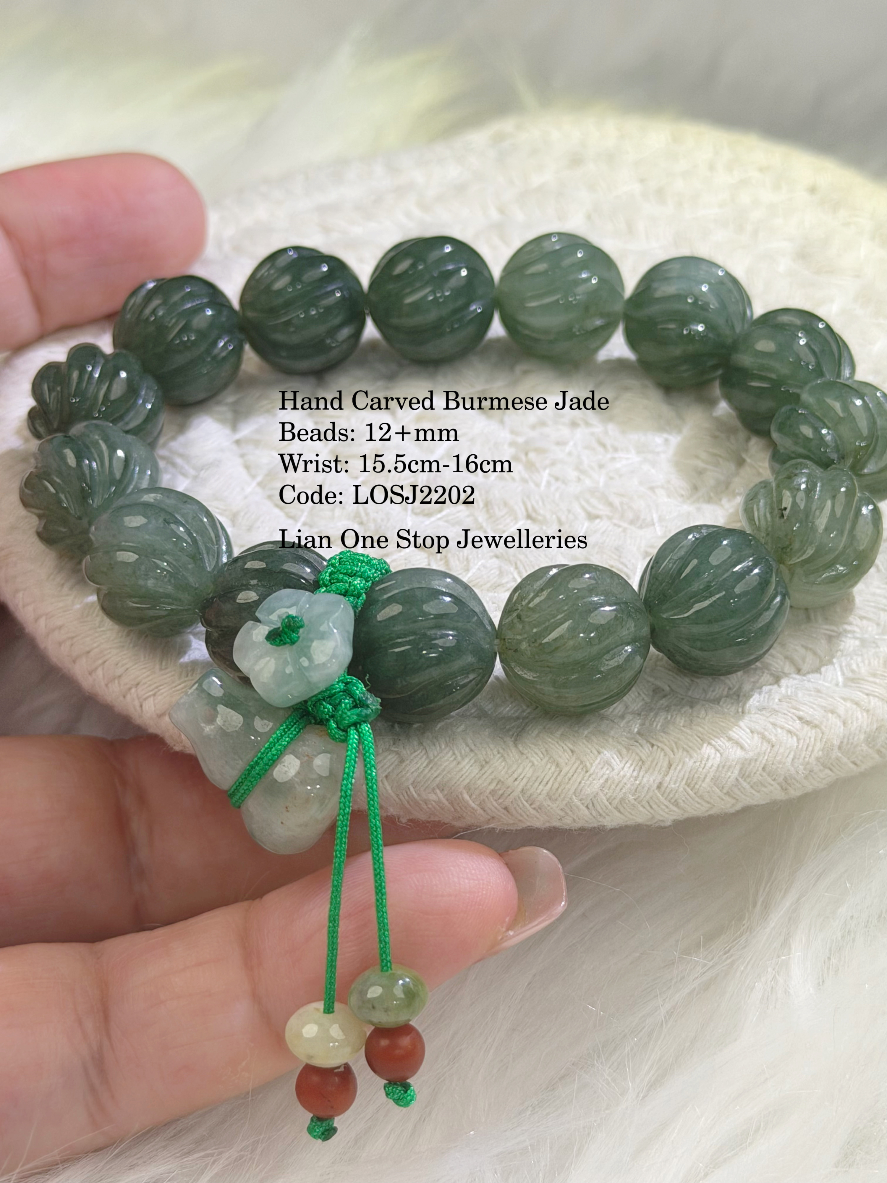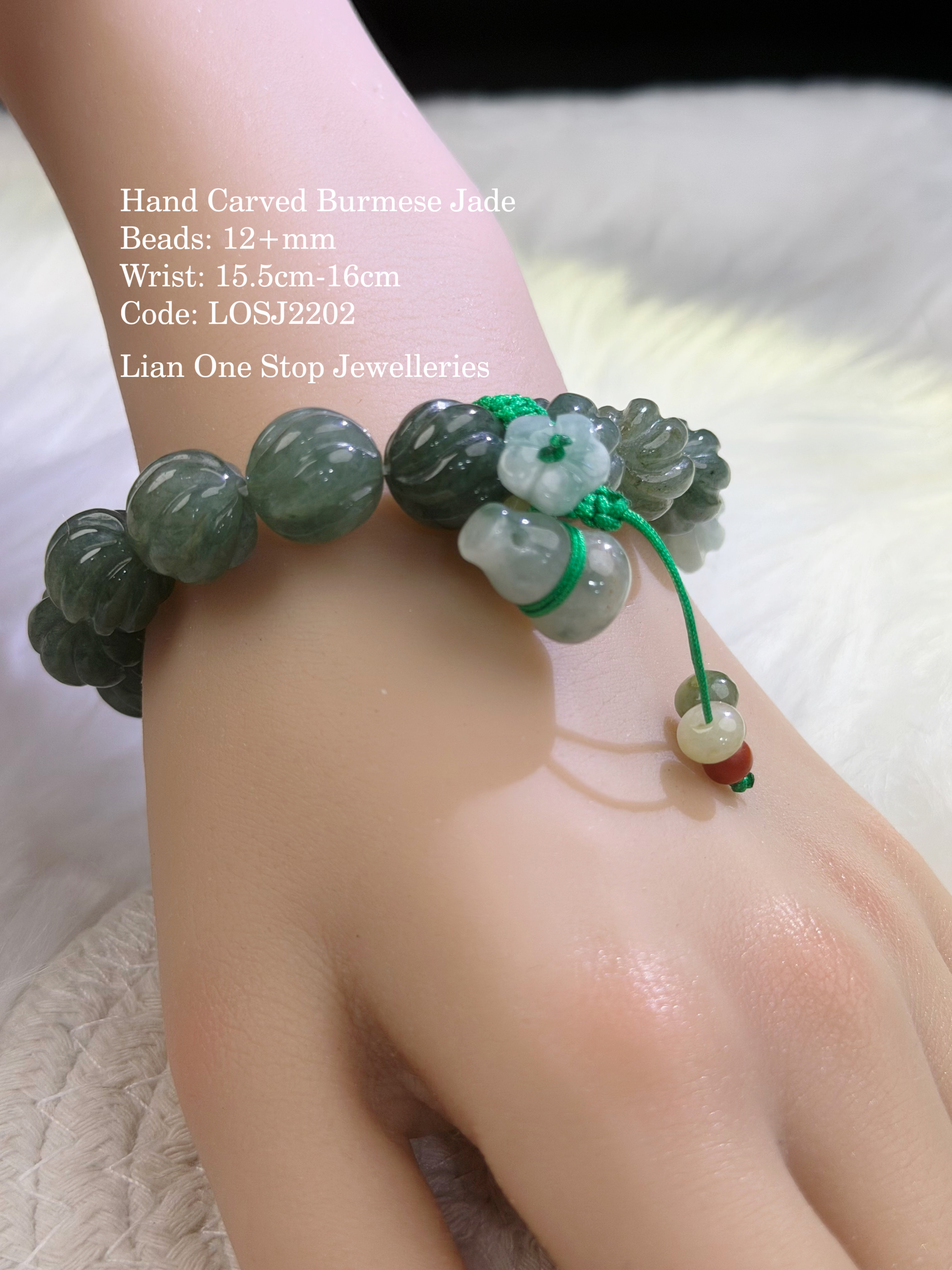 Hand Carved Burmese Jade Beads: 12+mm Wrist: 15.5cm-16cm Code: LOSJ2202