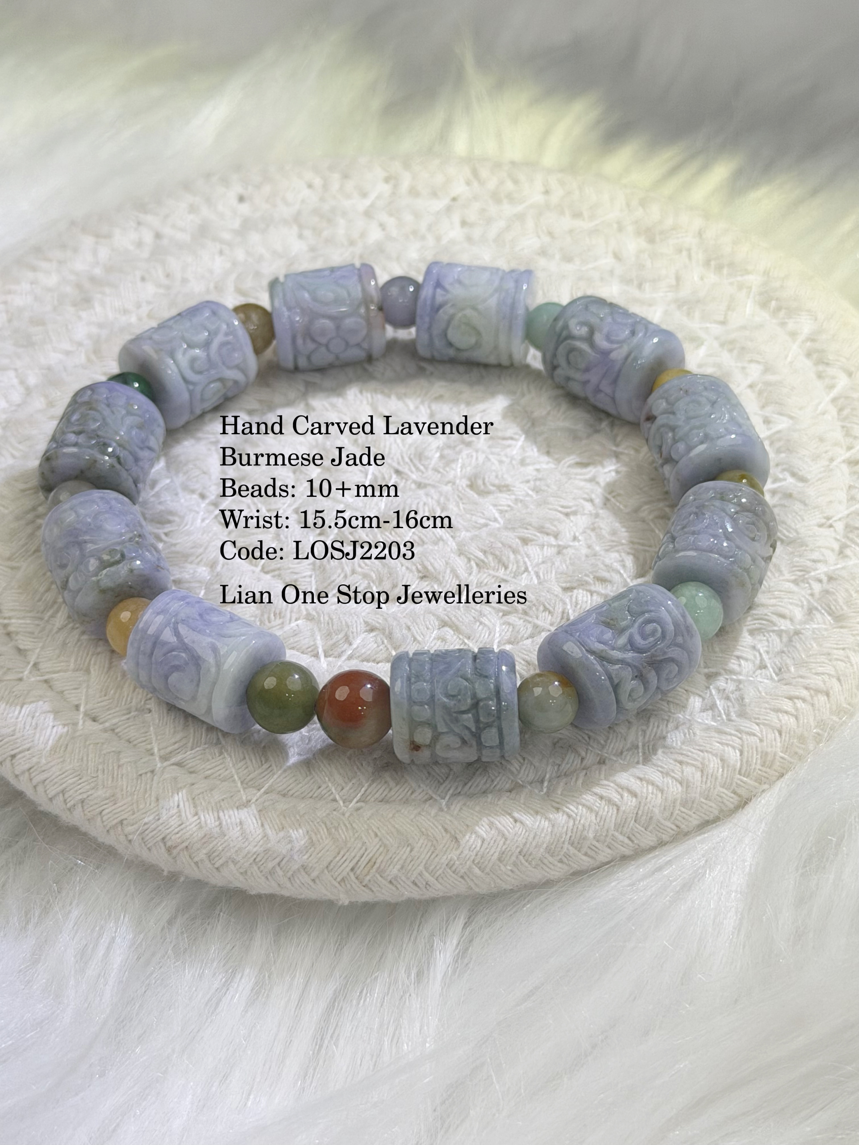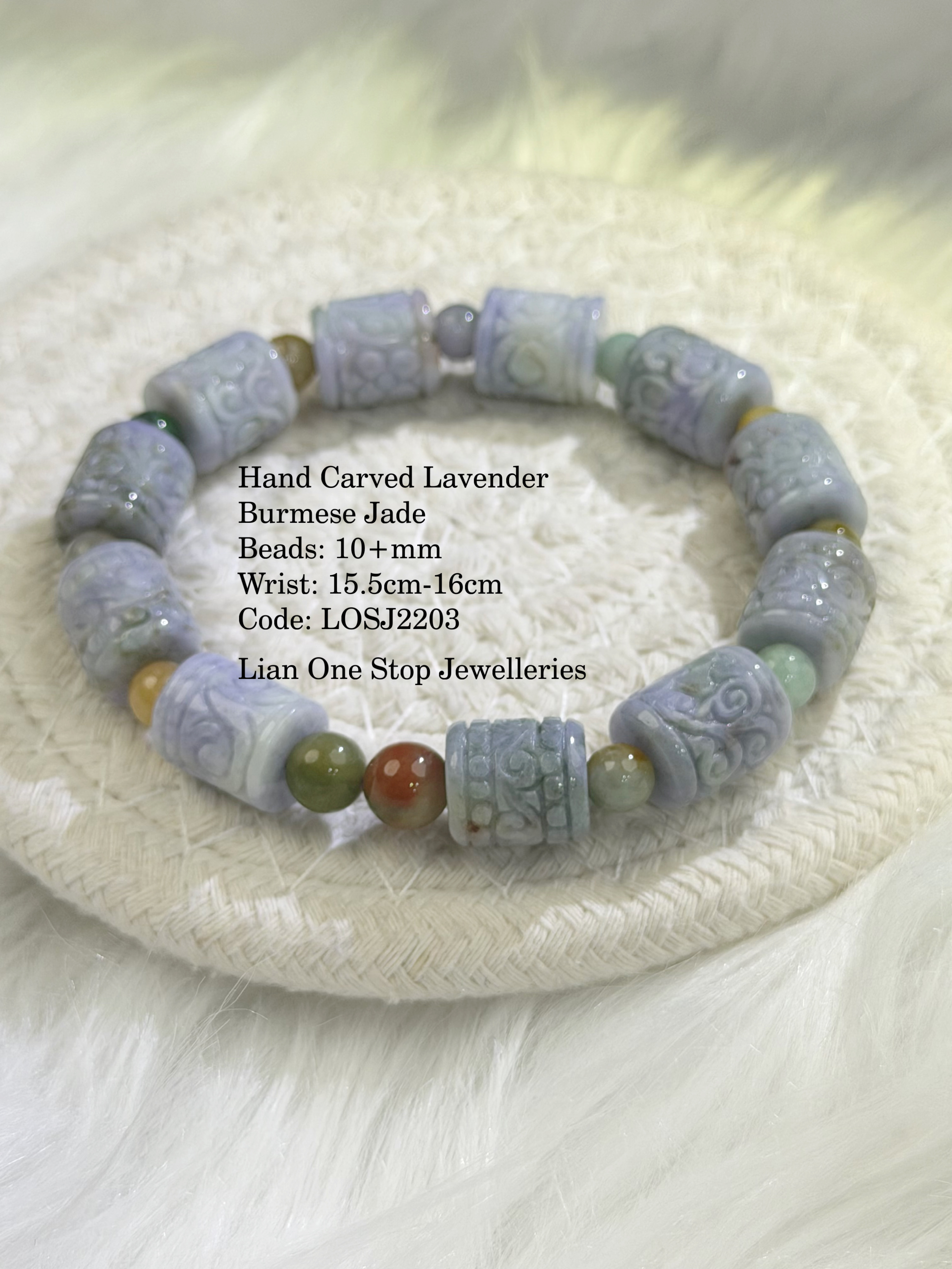 Hand Carved Lavender Burmese Jade Beads: 10+mm Wrist: 15.5cm-16cm Code: LOSJ2203