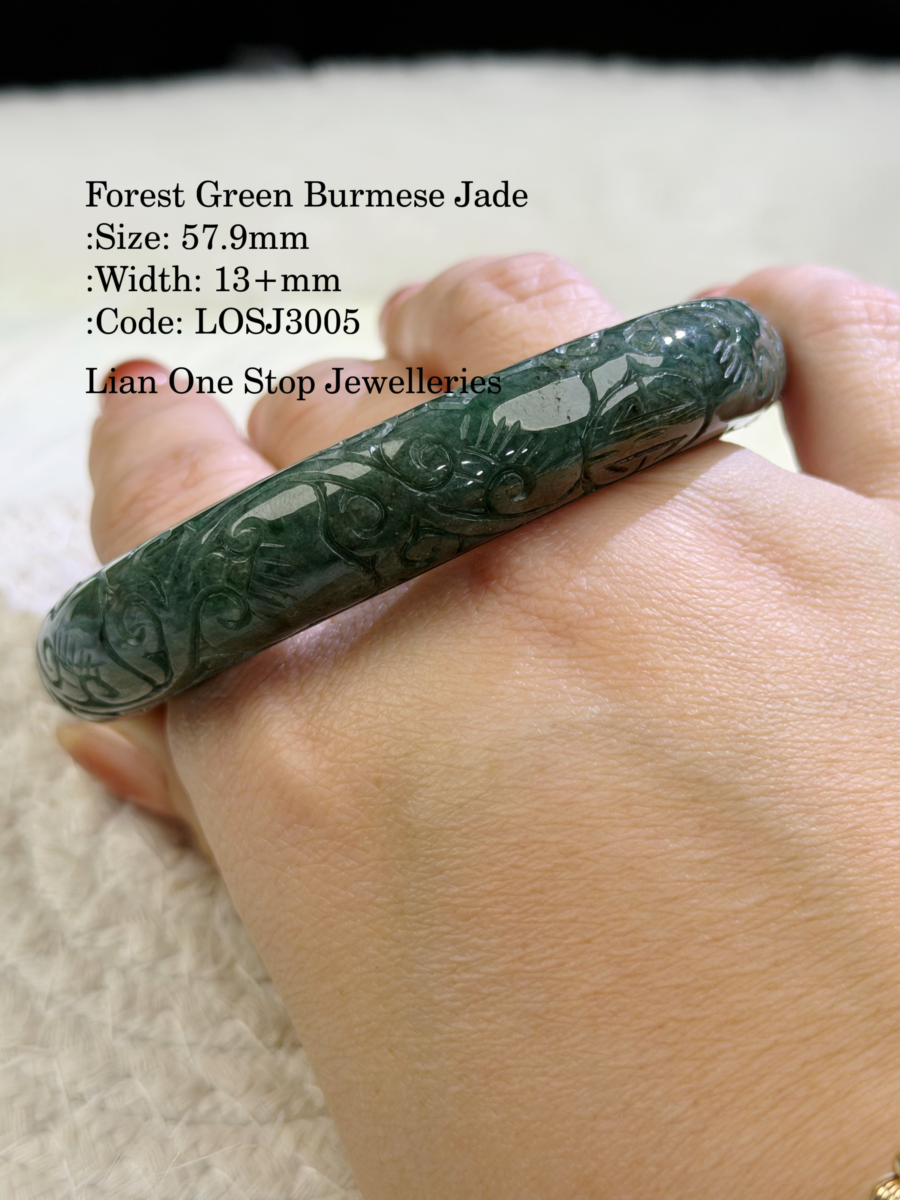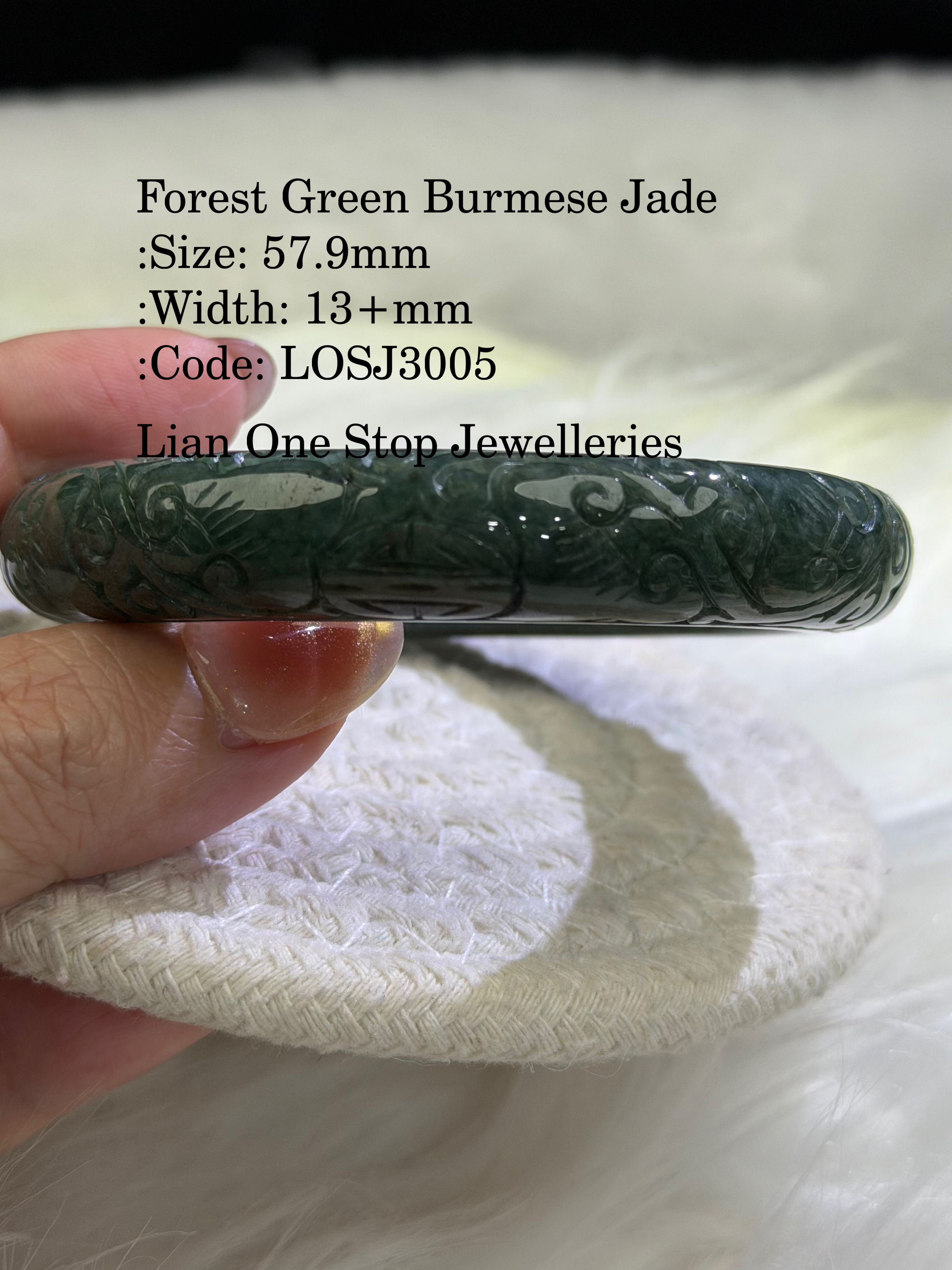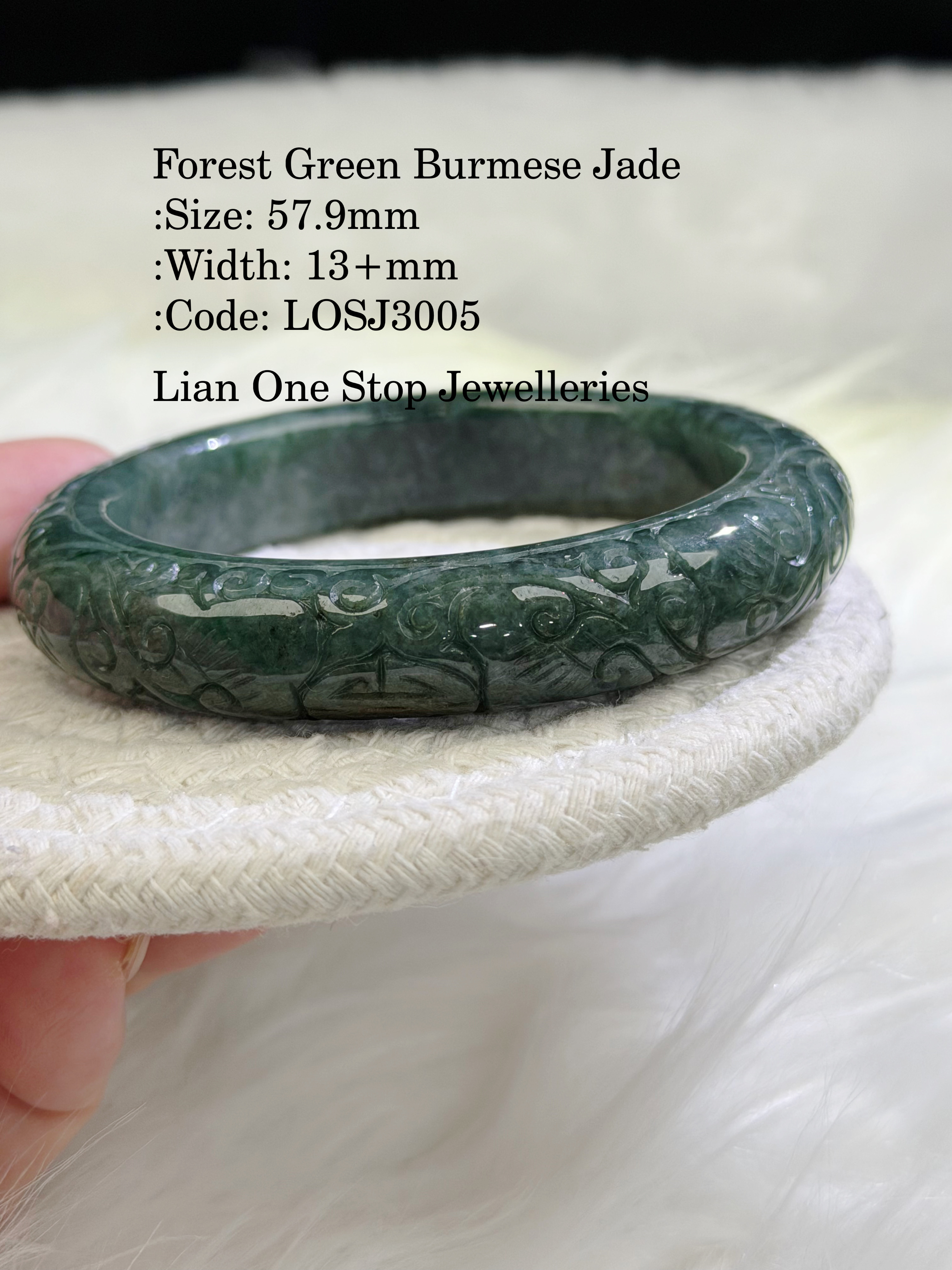 Forest Green Burmese Jade :Size: 57.9mm :Width: 13+mm :Code: LOSJ3005 :Suitable for size 57, 58