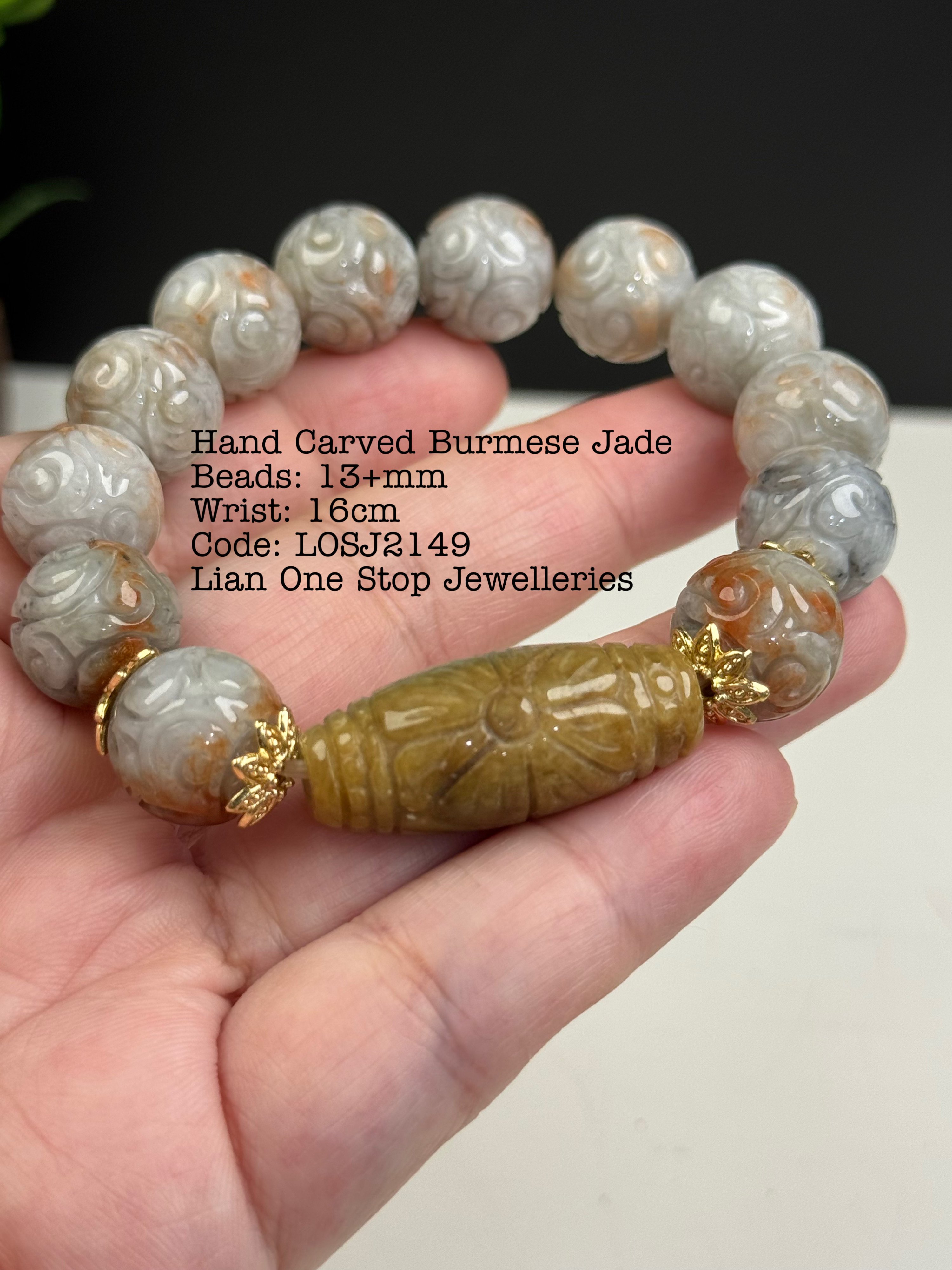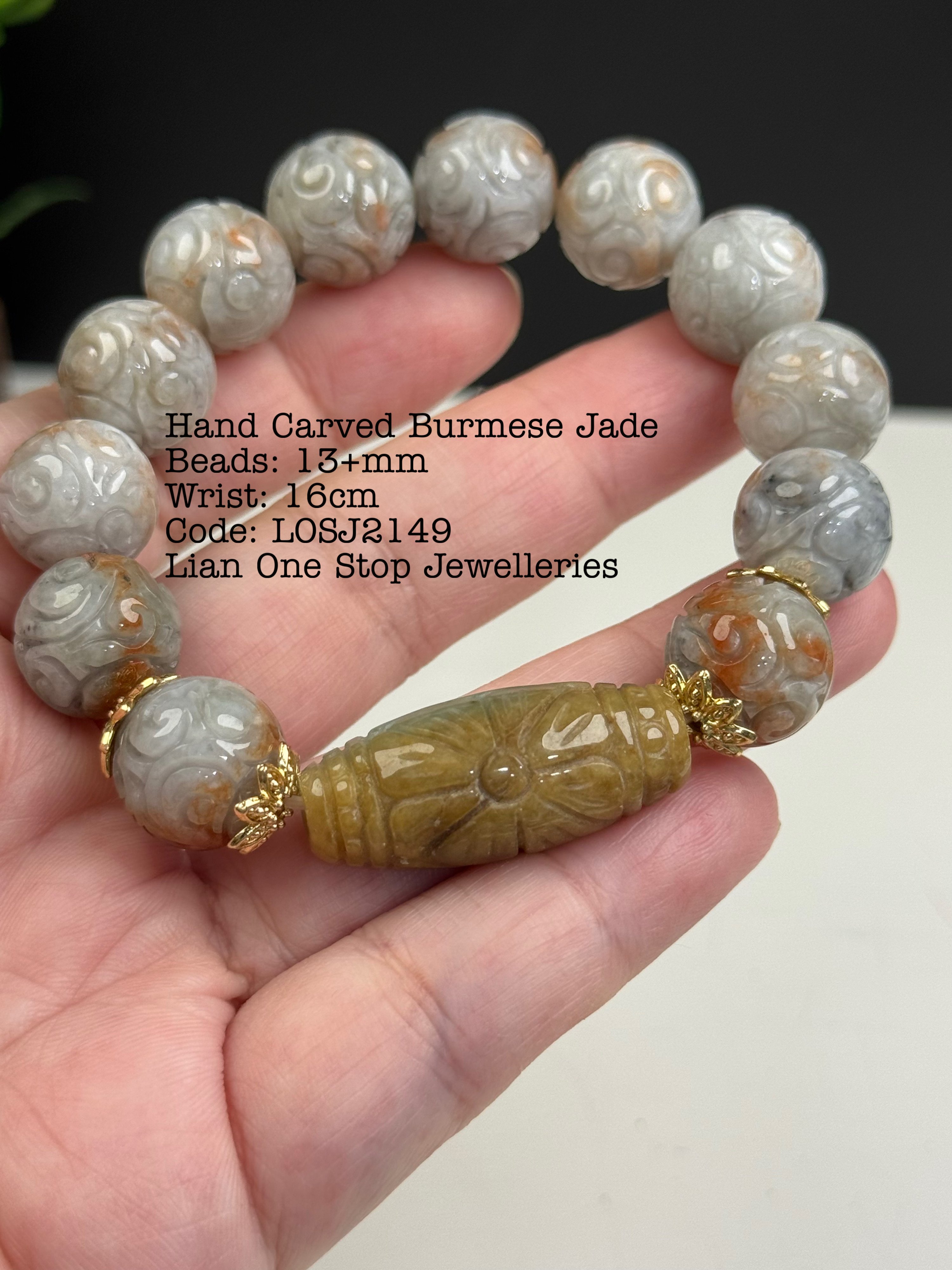 Hand Carved Burmese Jade Beads: 13+mm Wrist: 16cm Code: LOSJ2149