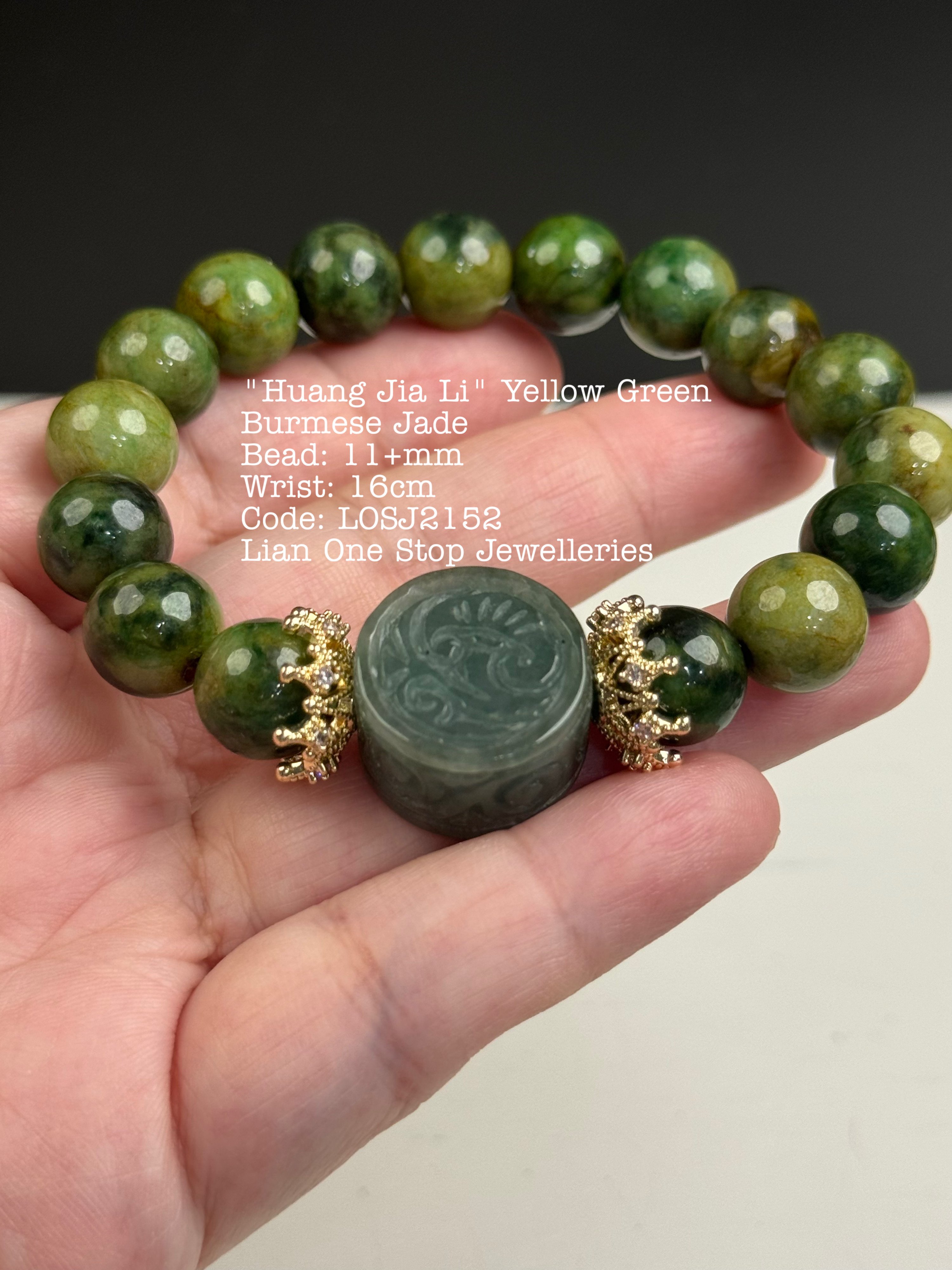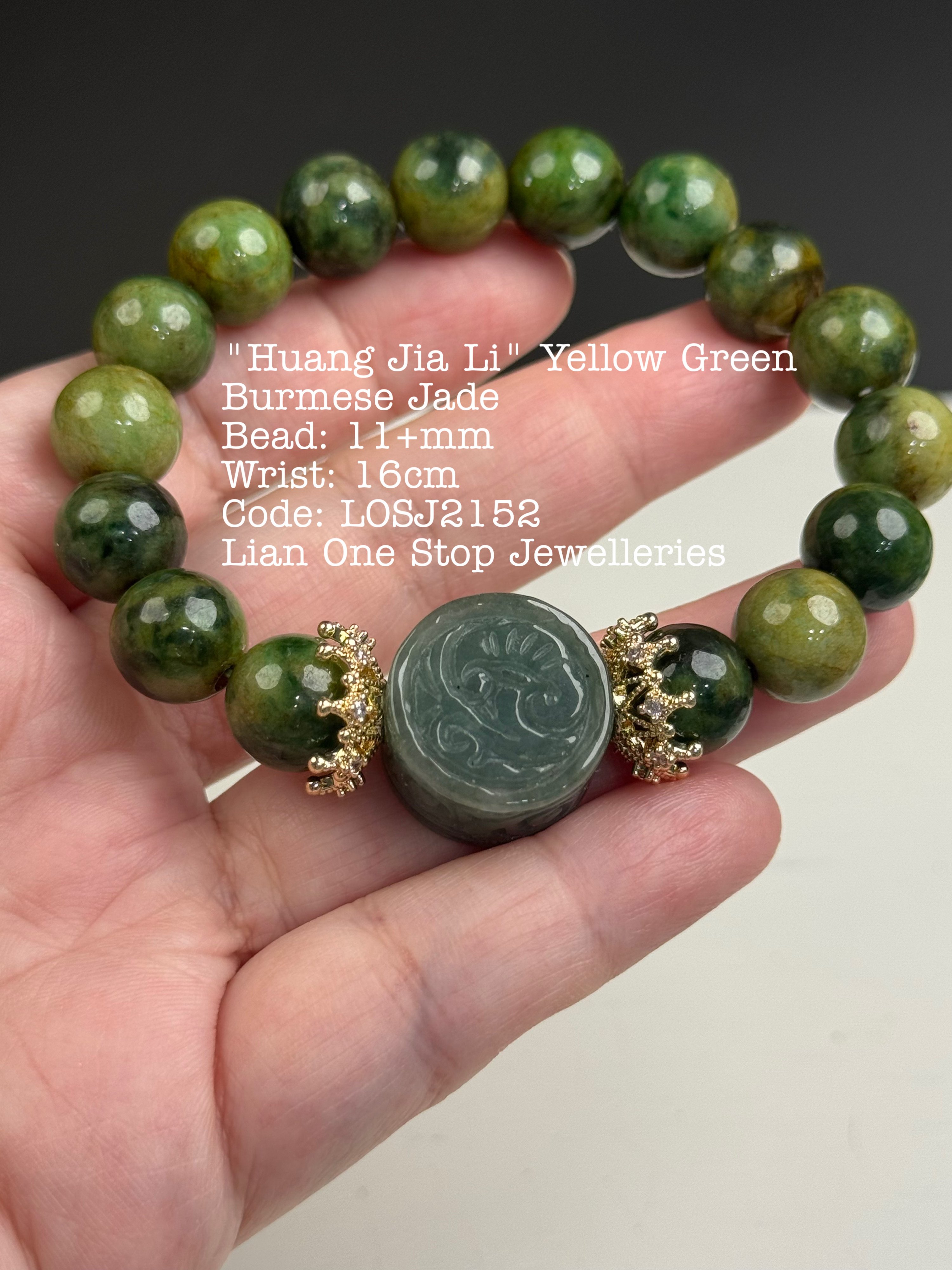 Code: LOSJ2152 "Huang Jia Li" Yellow Green Burmese Jade 11+mm