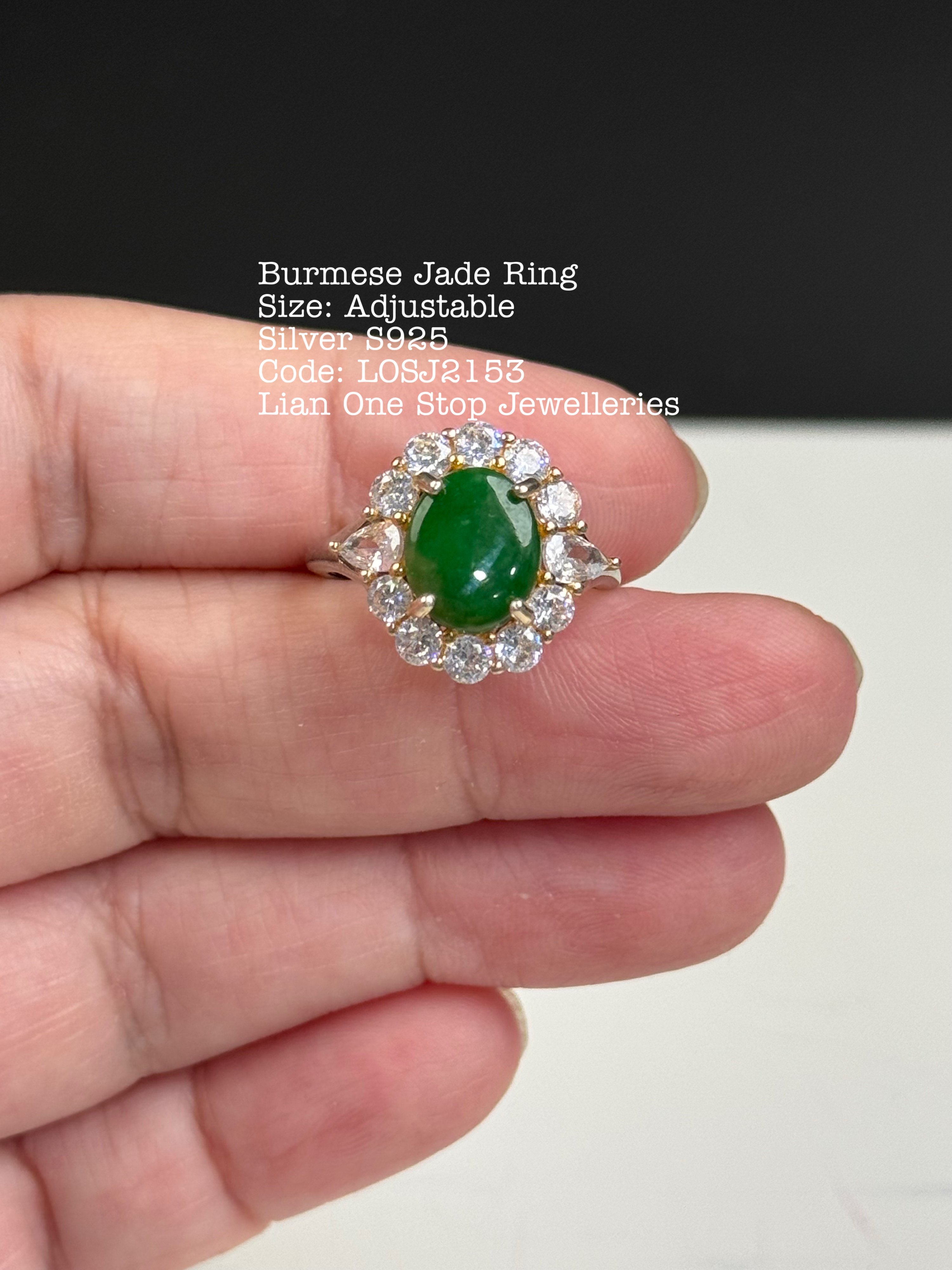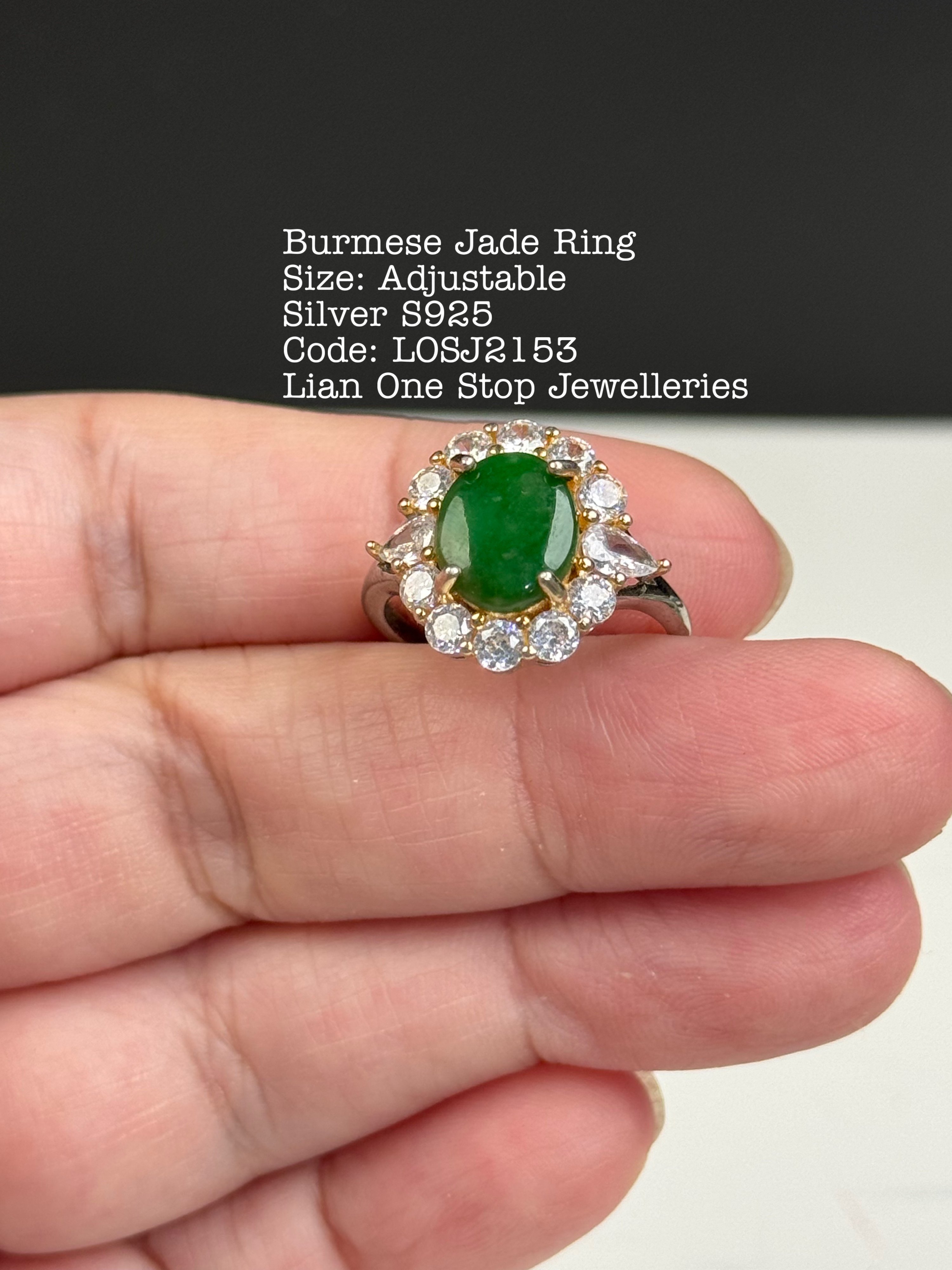 Burmese Jade Ring Size: Adjustable Silver S925 Code: LOSJ2153