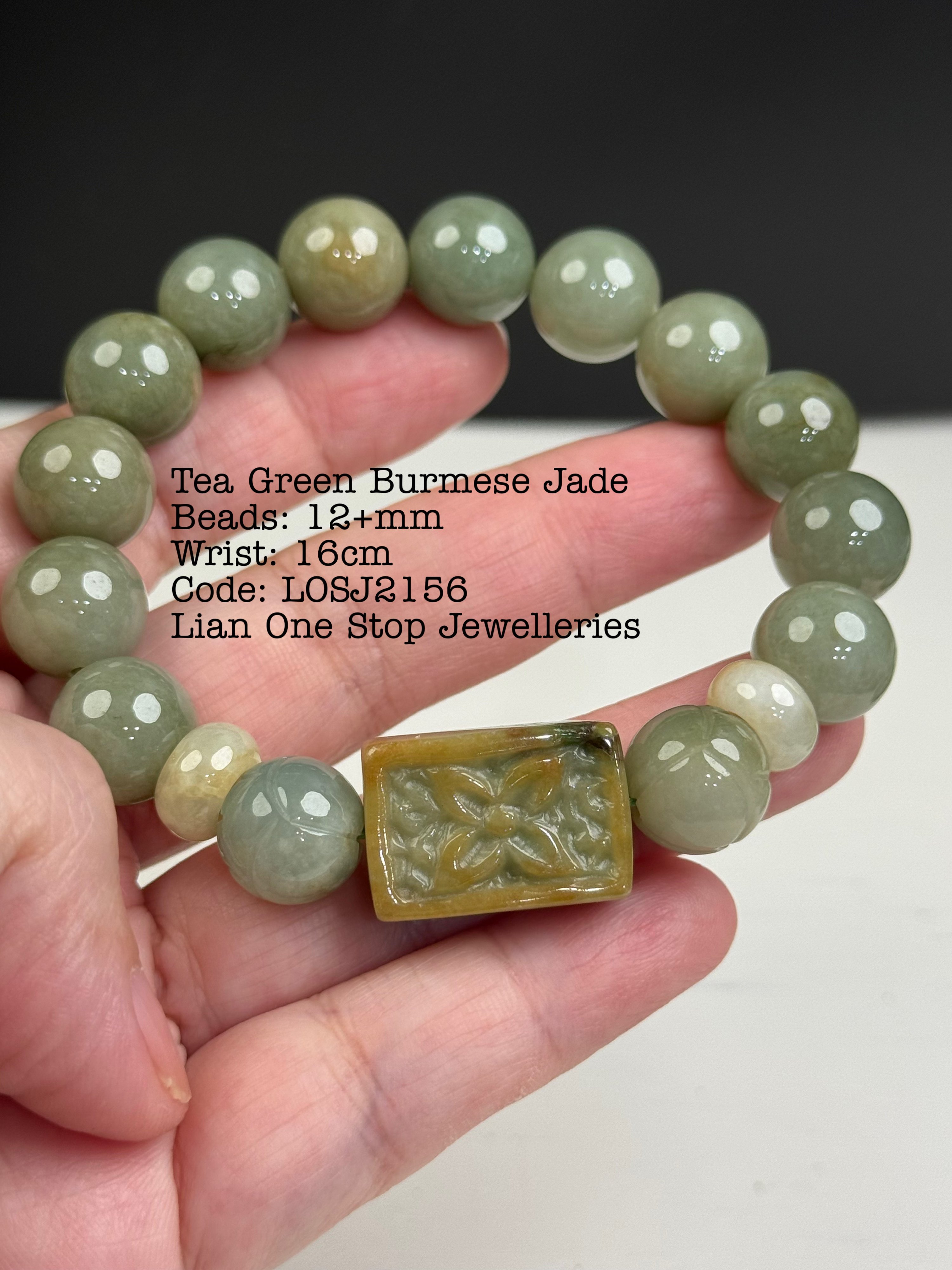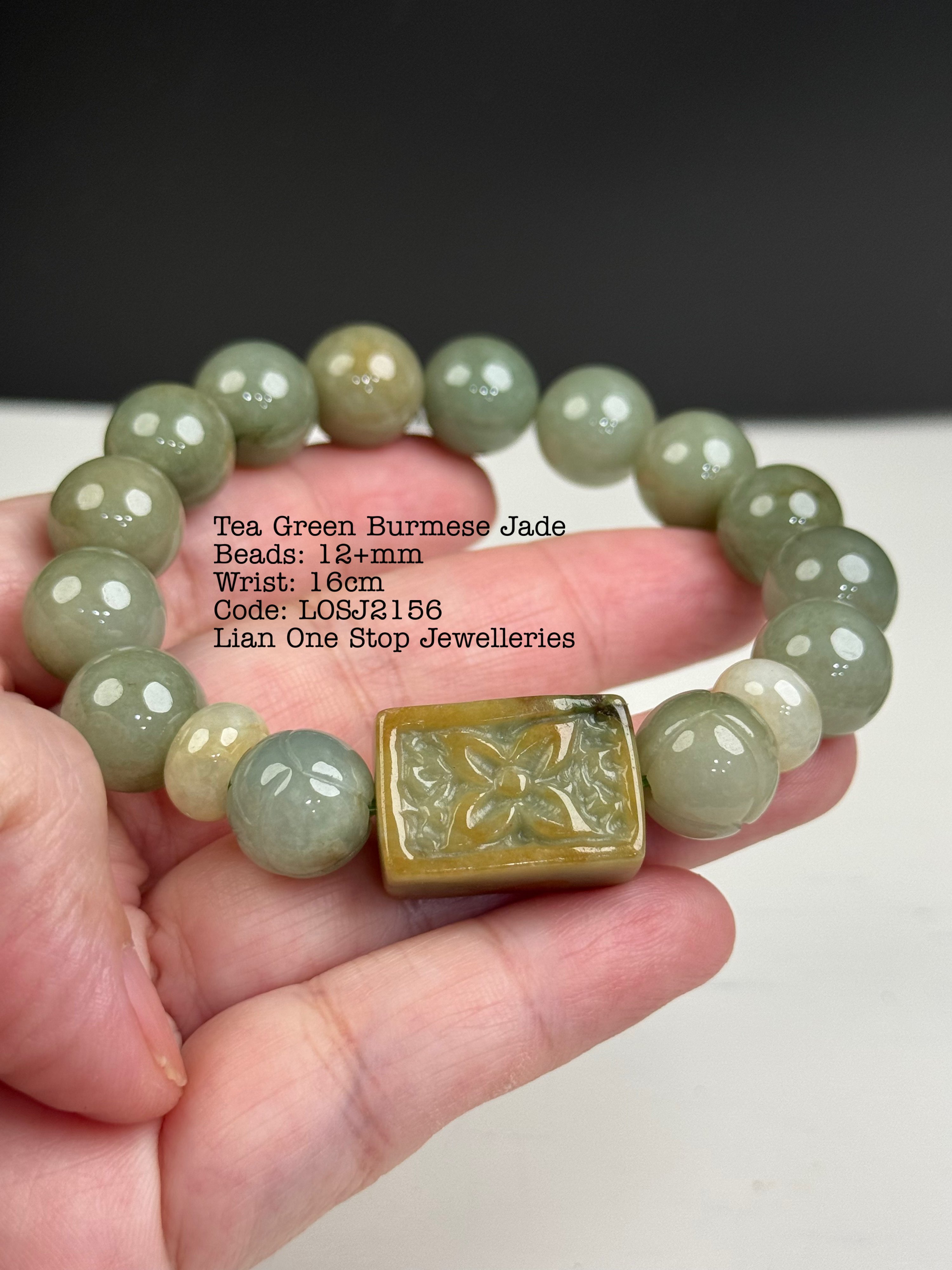 Tea Green Burmese Jade Beads: 12+mm Wrist: 16cm Code: LOSJ2156