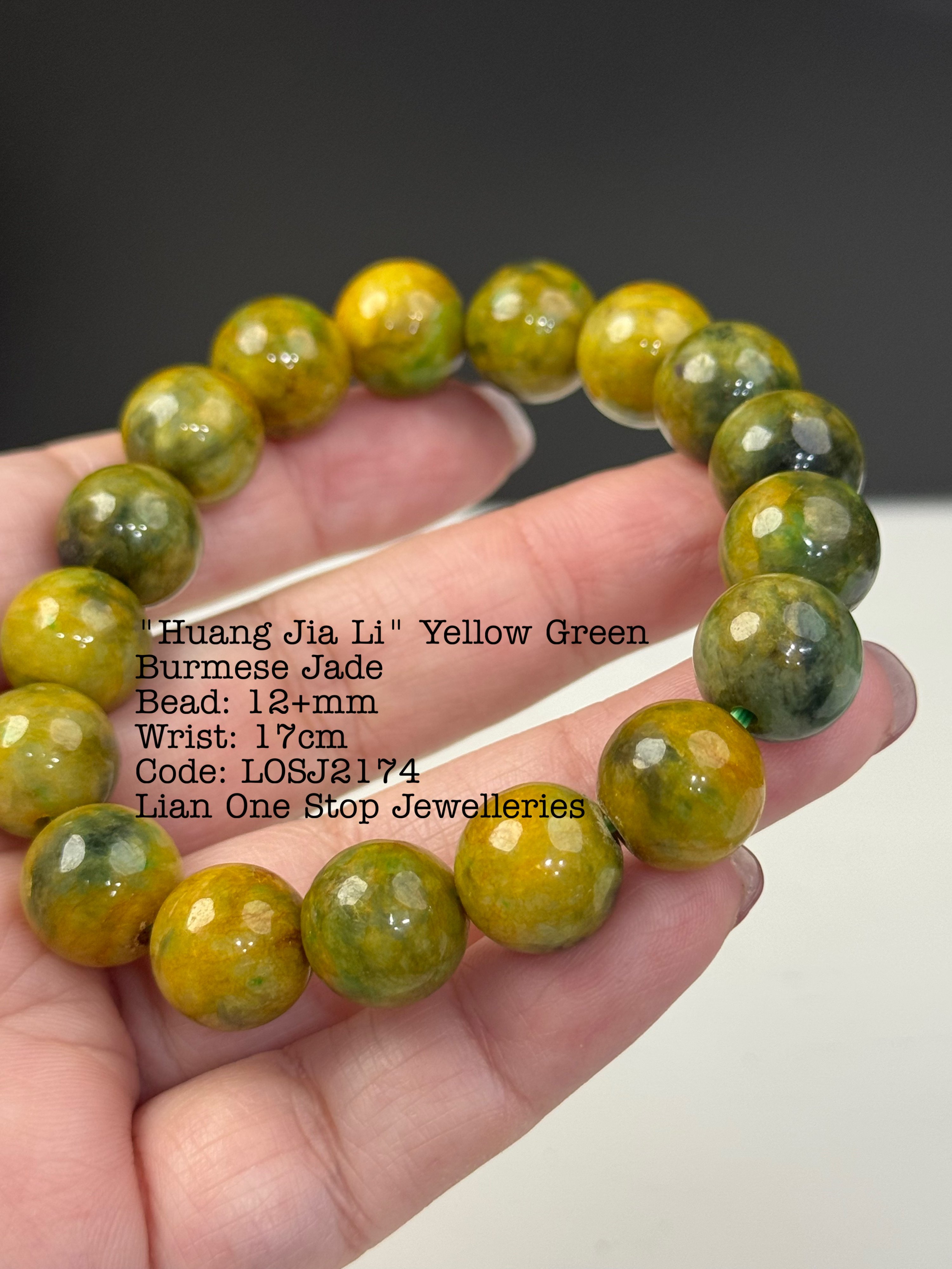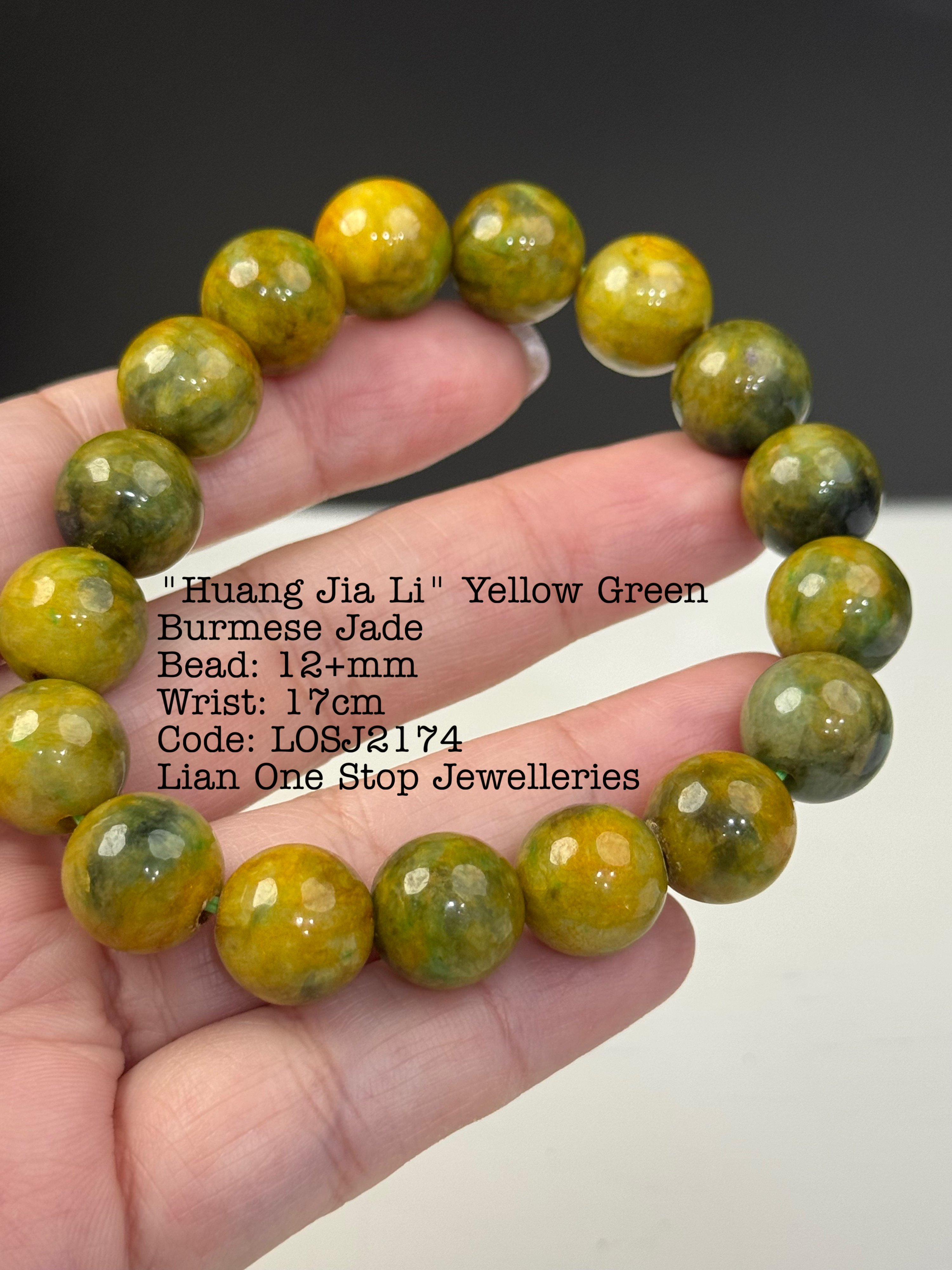 "Huang Jia Li" Yellow Green Burmese Jade Bead: 12+mm Wrist: 17cm Code: LOSJ2174