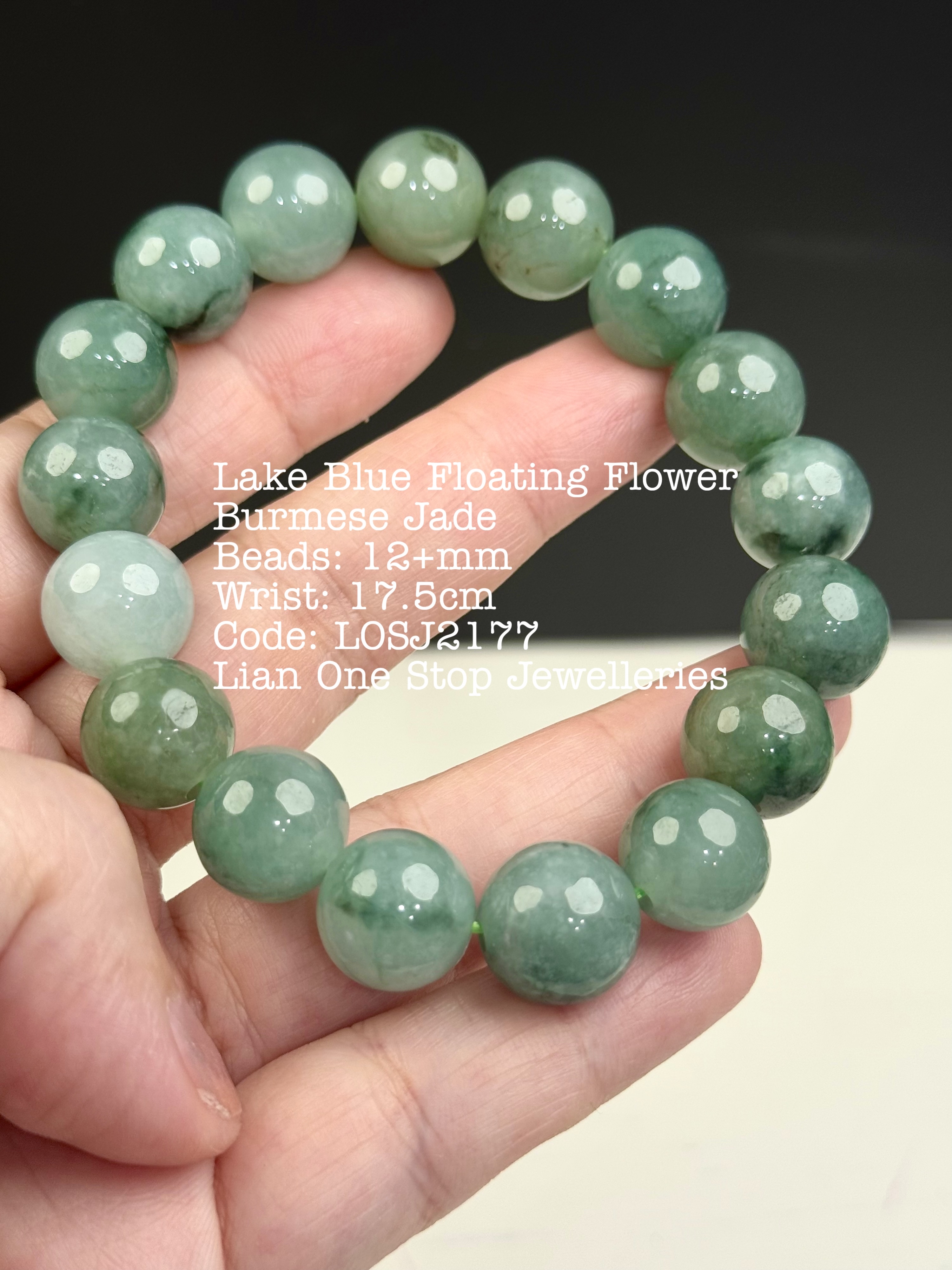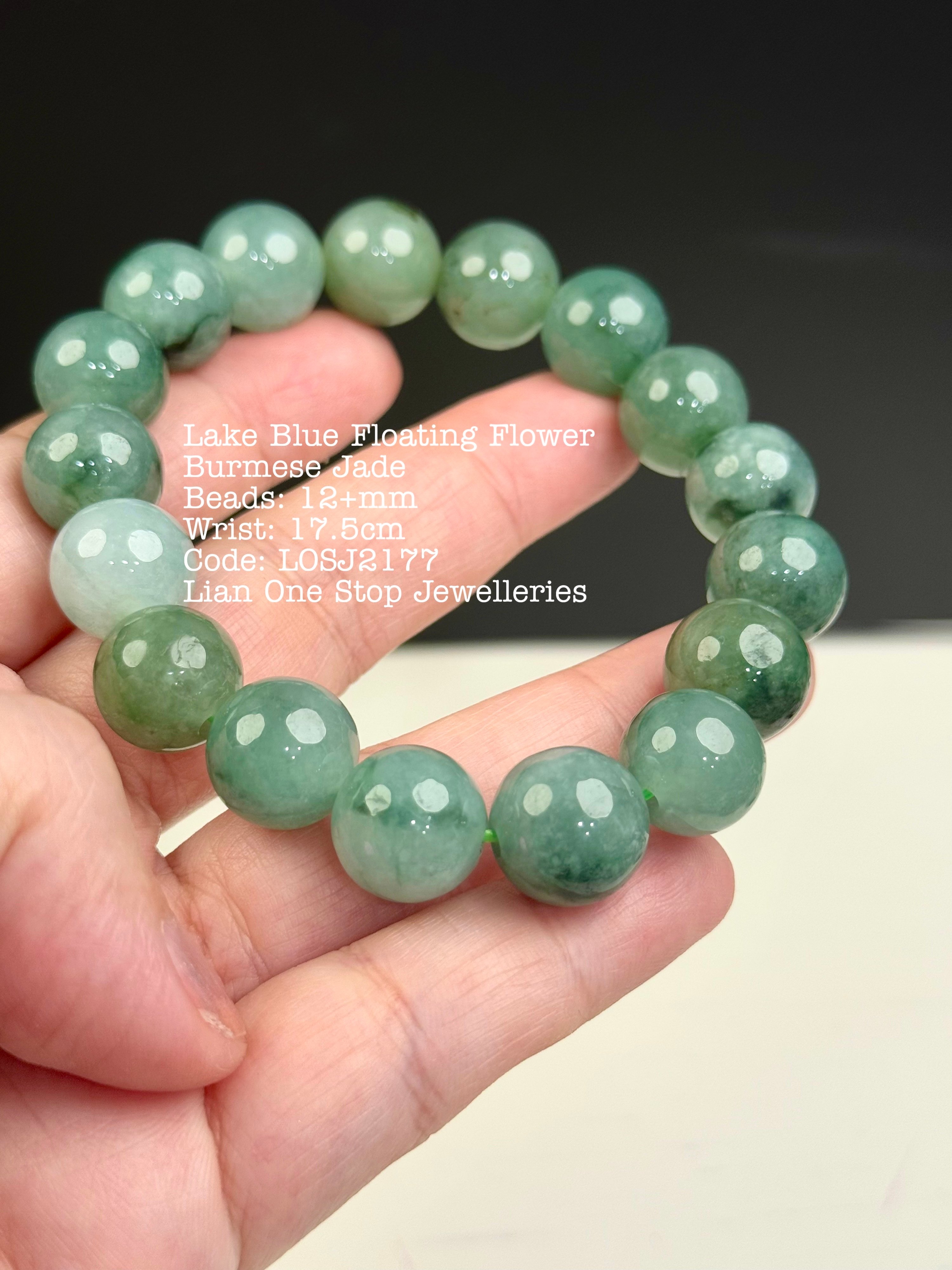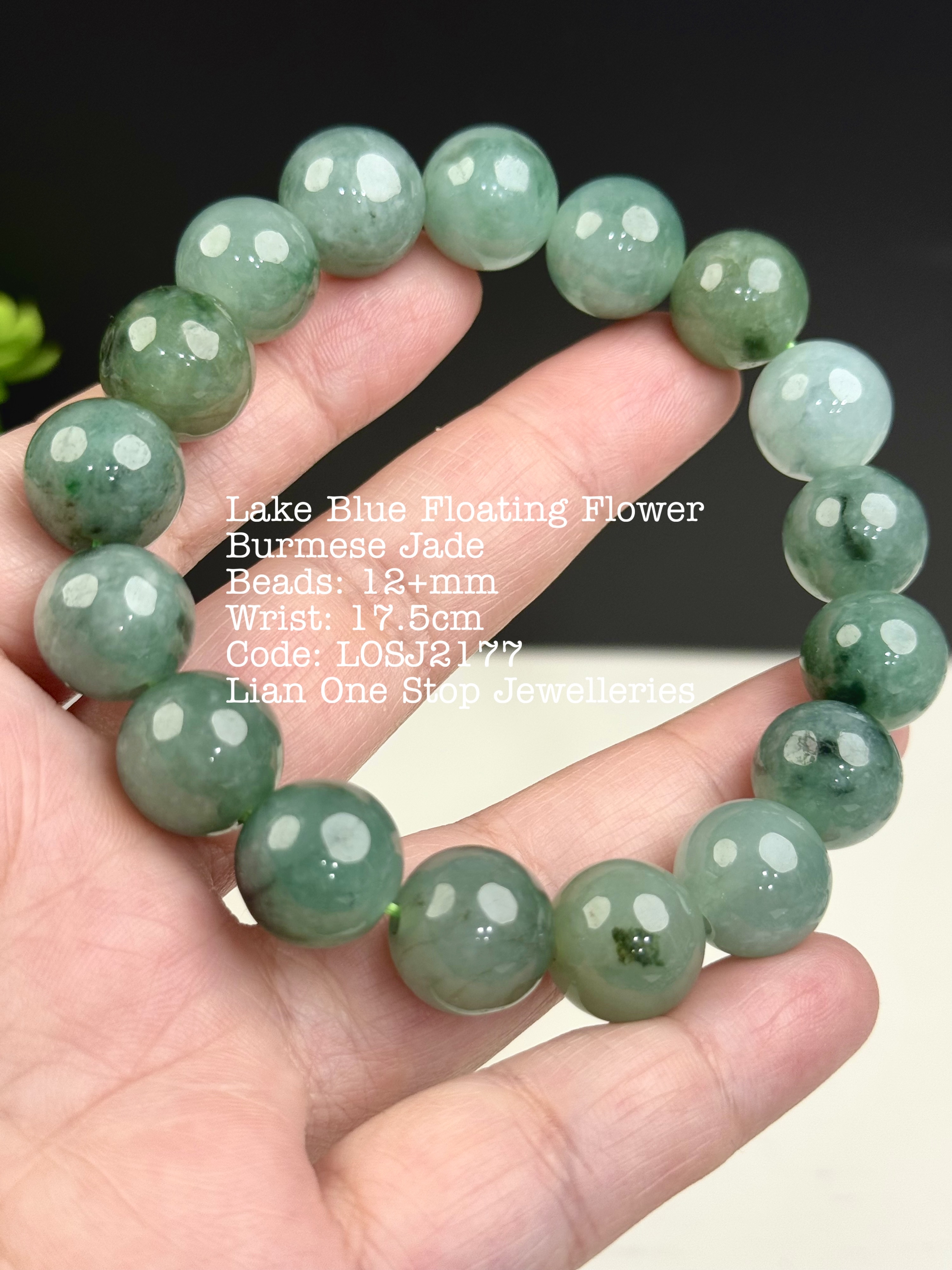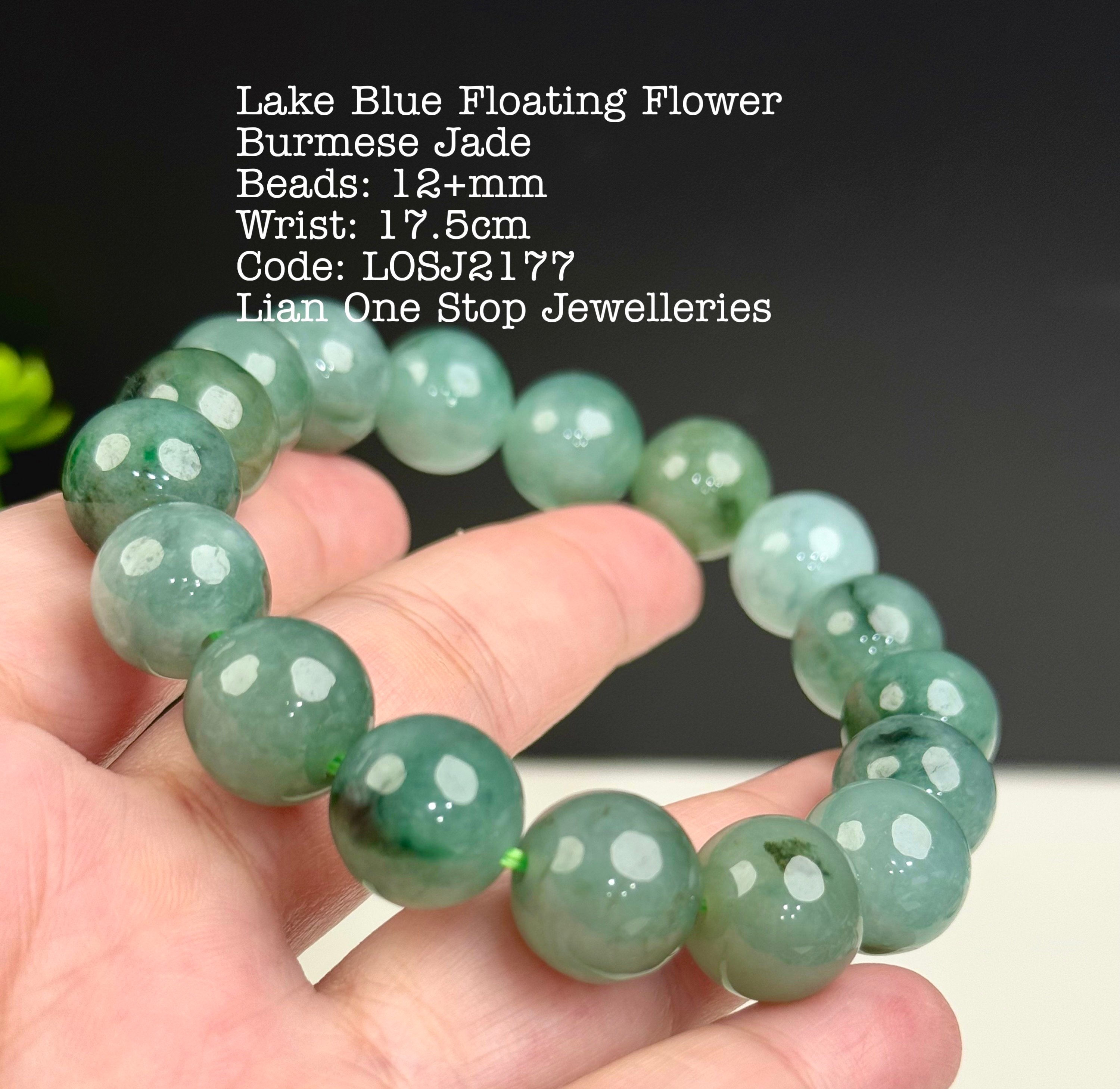 Lake Blue Floating Flower Burmese Jade Beads: 12+mm Wrist: 17.5cm Code: LOSJ2177