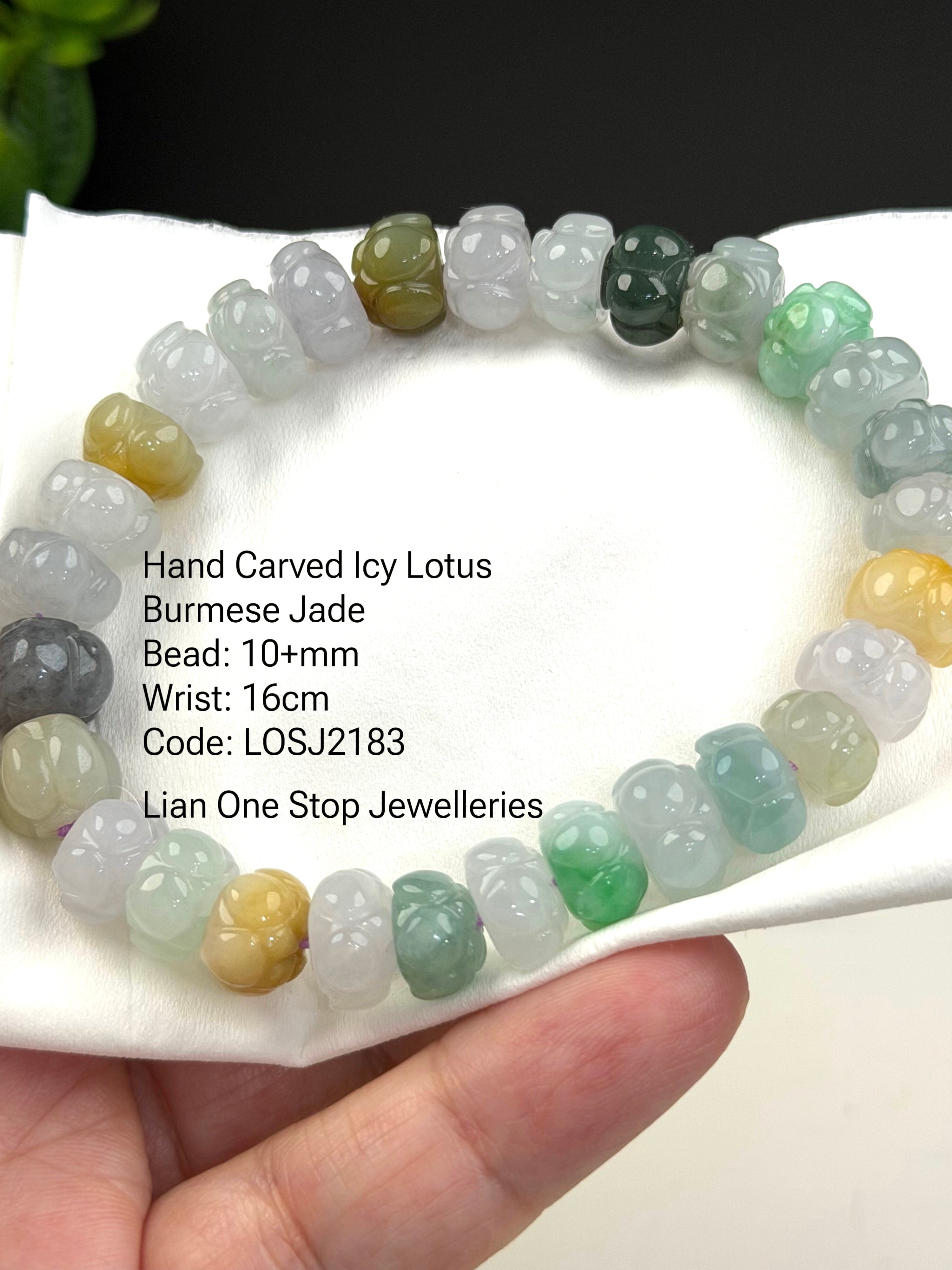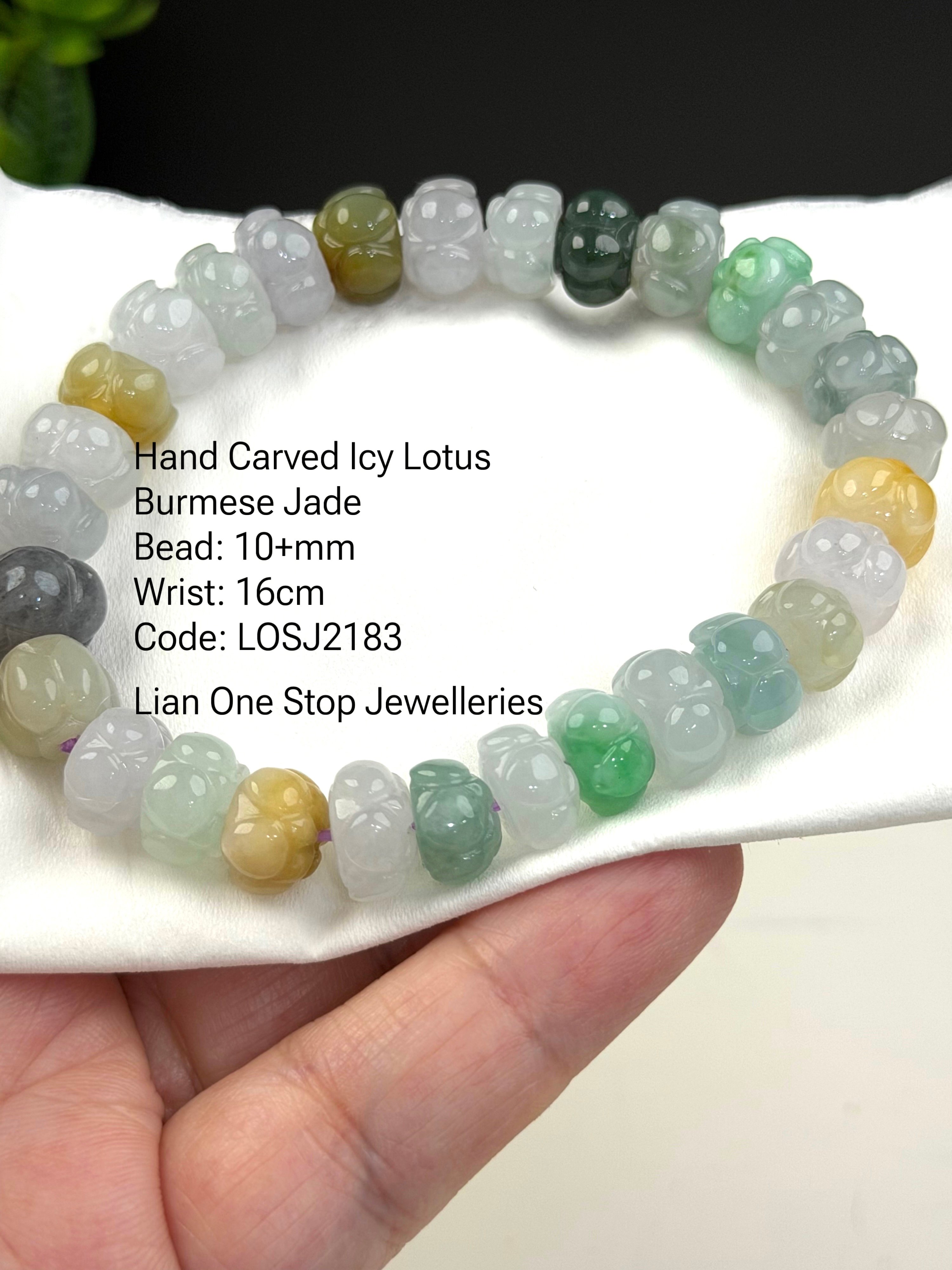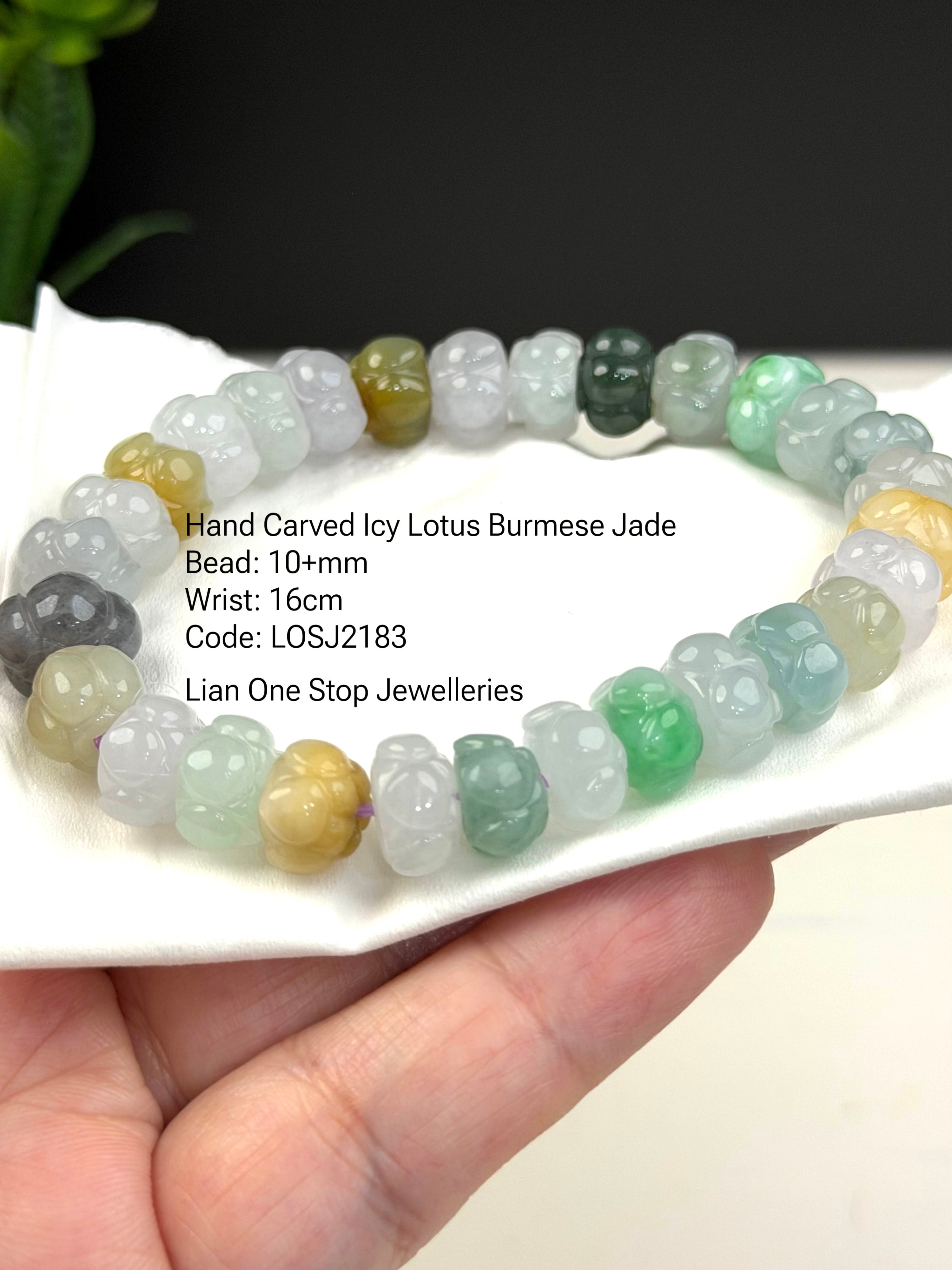 Hand Carved Icy Lotus Burmese Jade Bead: 10+mm Wrist: 16cm Code: LOSJ2183