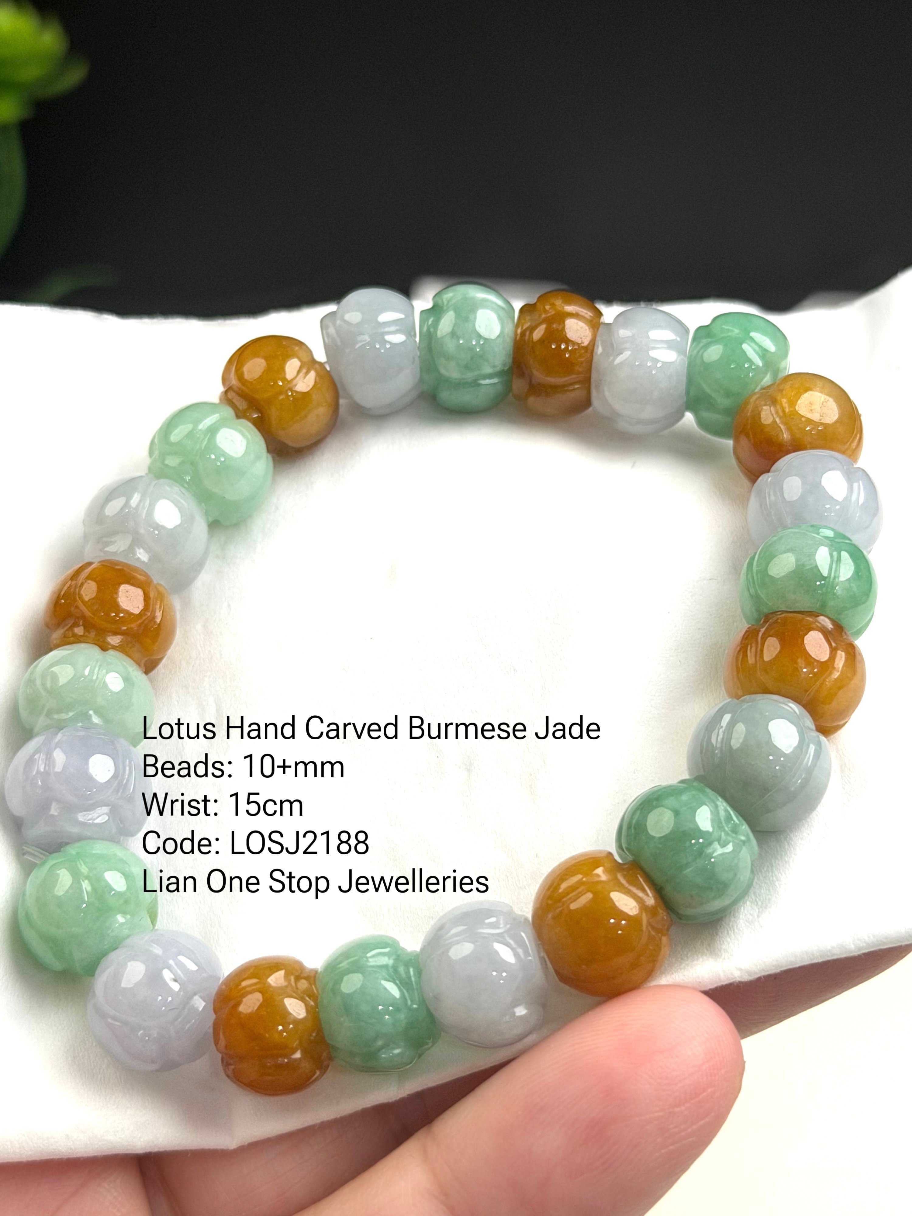 Lotus Hand Carved Burmese Jade Beads: 10+mm Wrist: 15cm Code: LOSJ2188