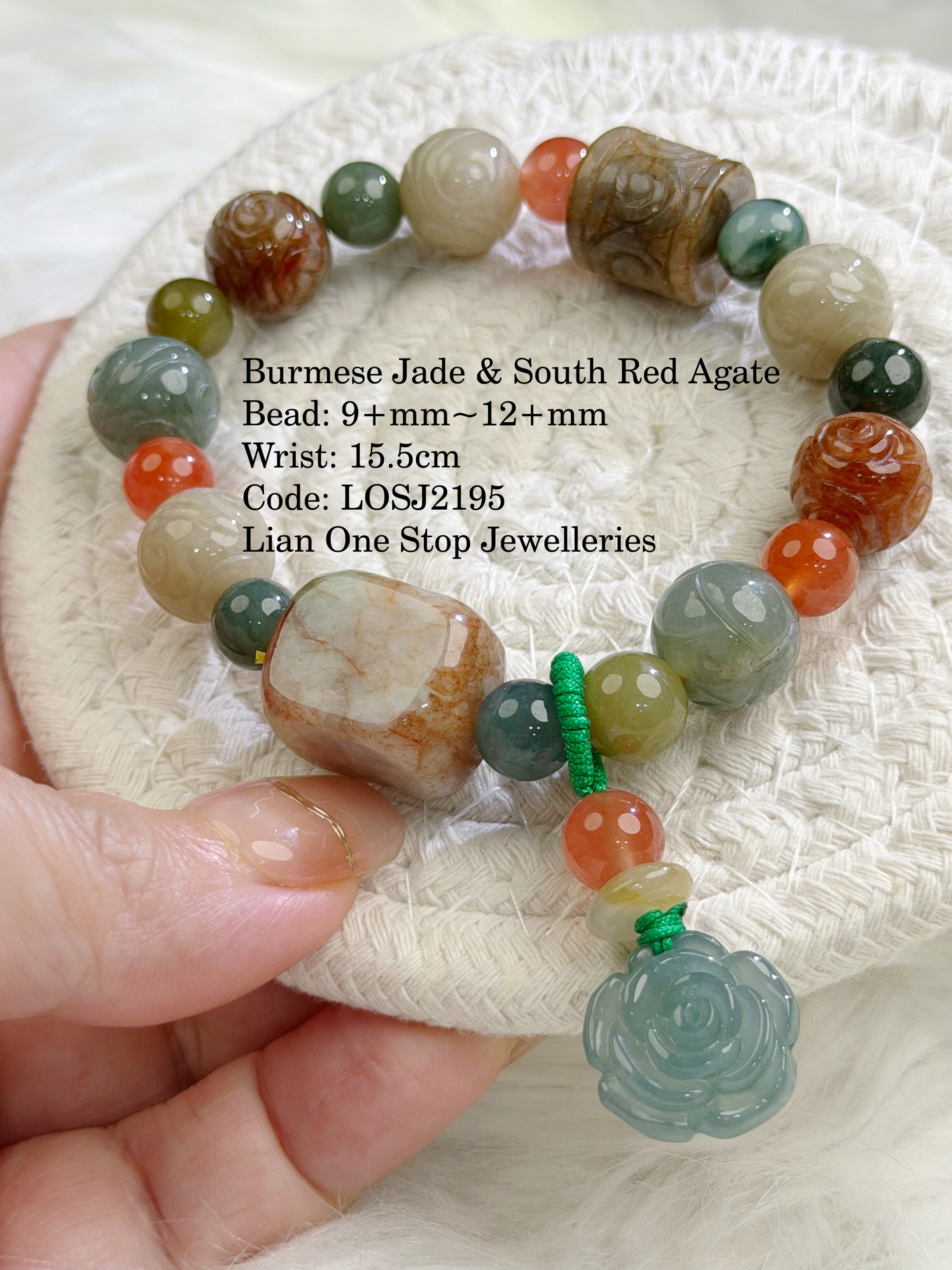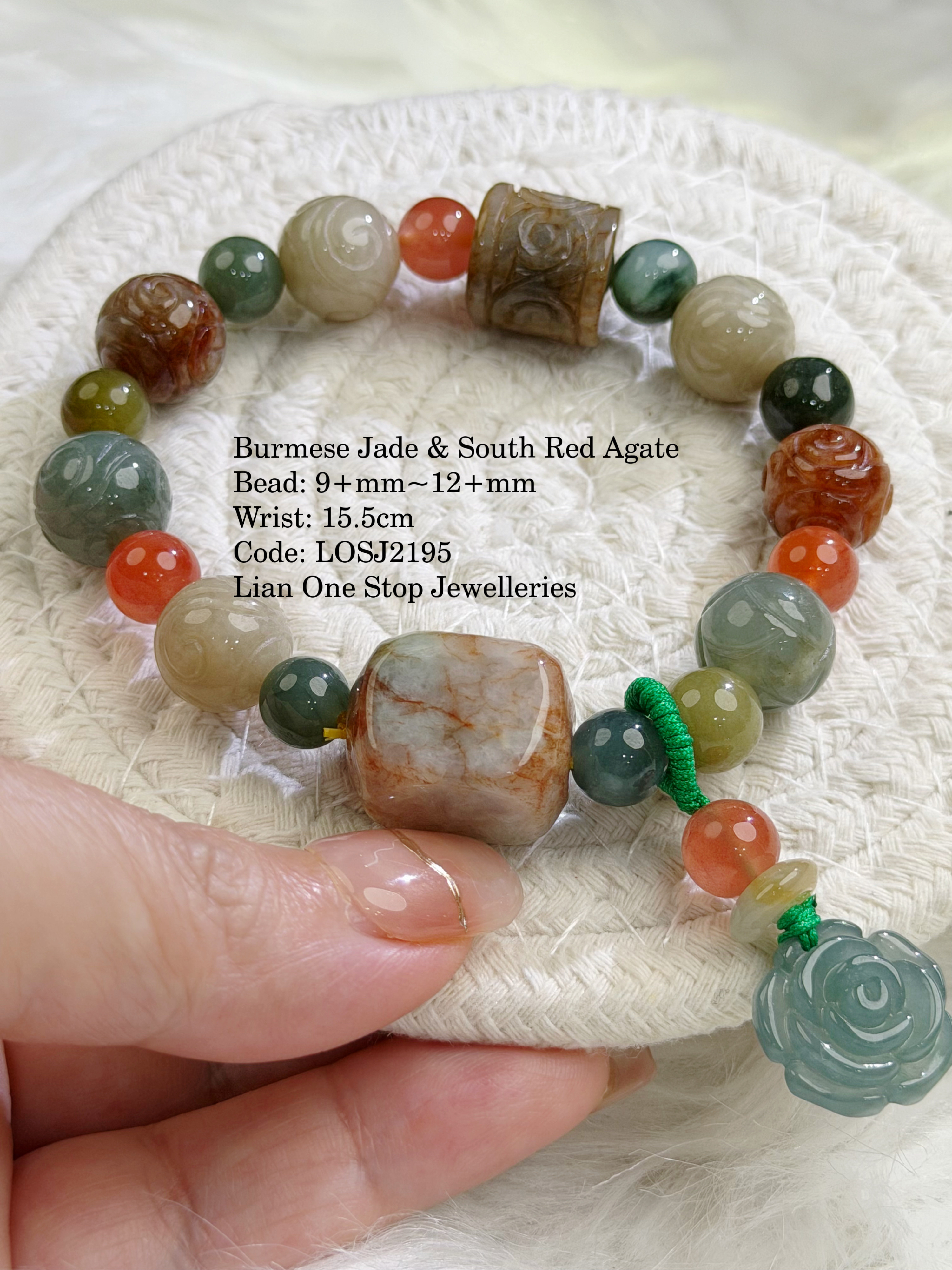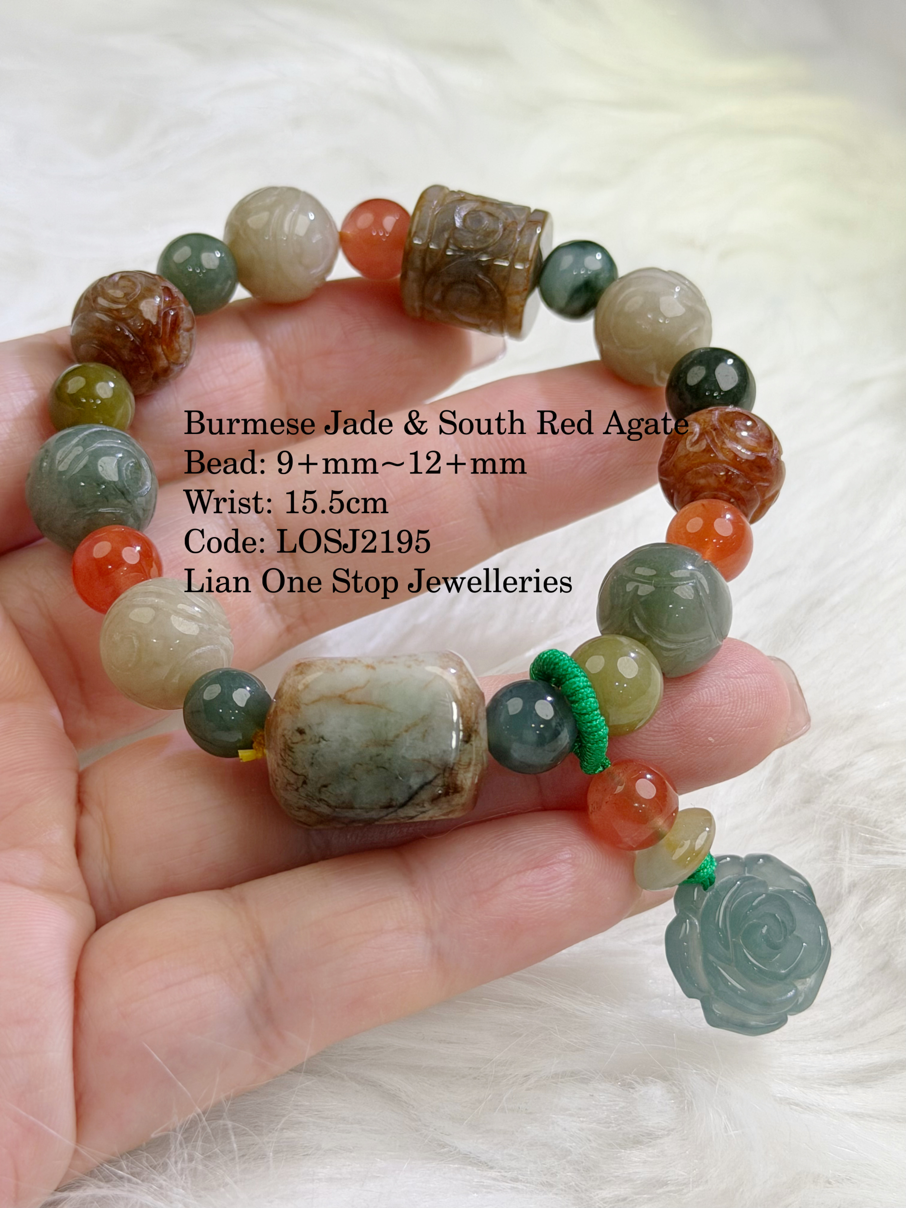 Burmese Jade & South Red Agate Bead: 9+mm~12+mm Wrist: 15.5cm Code: LOSJ2195
