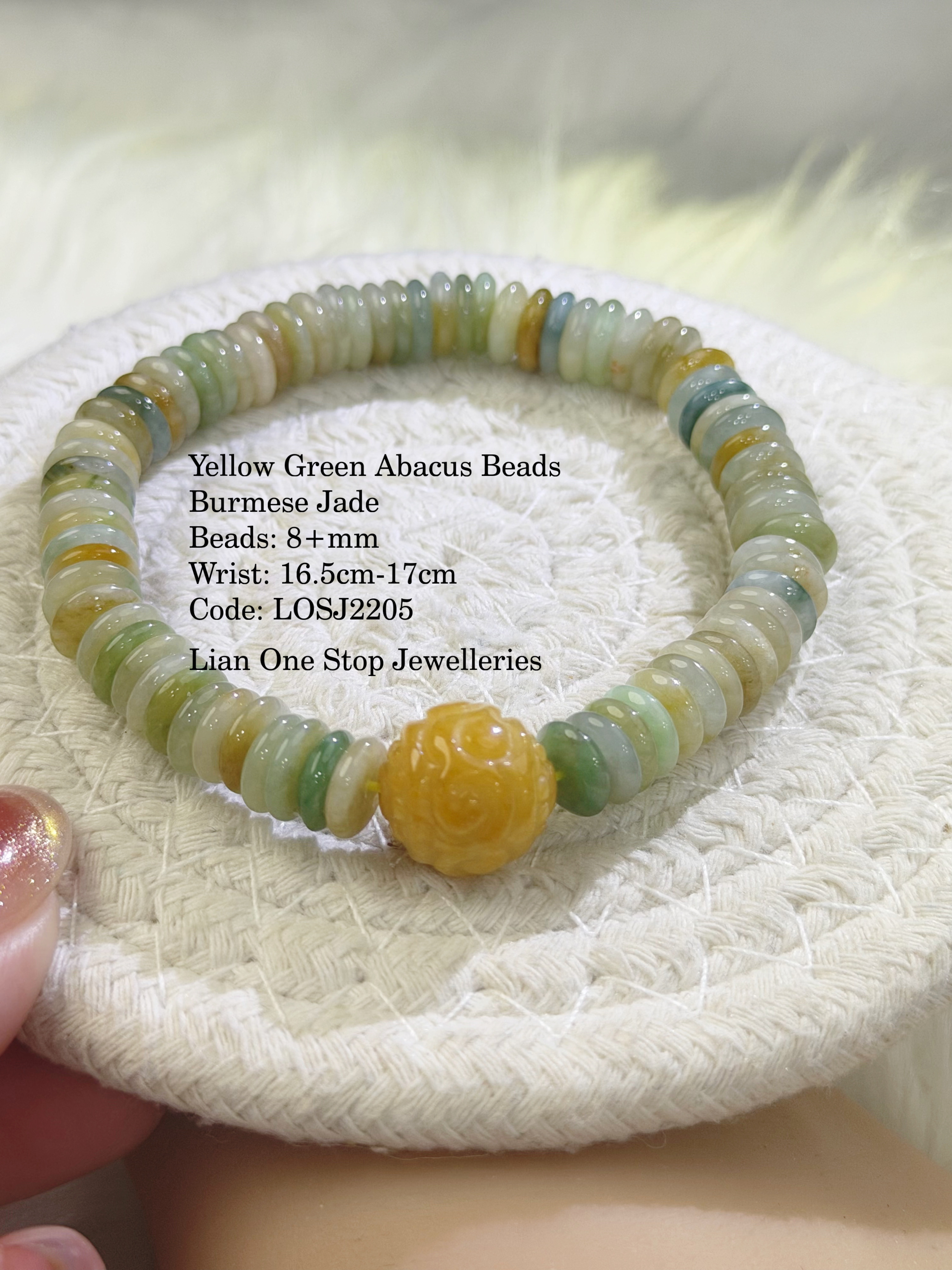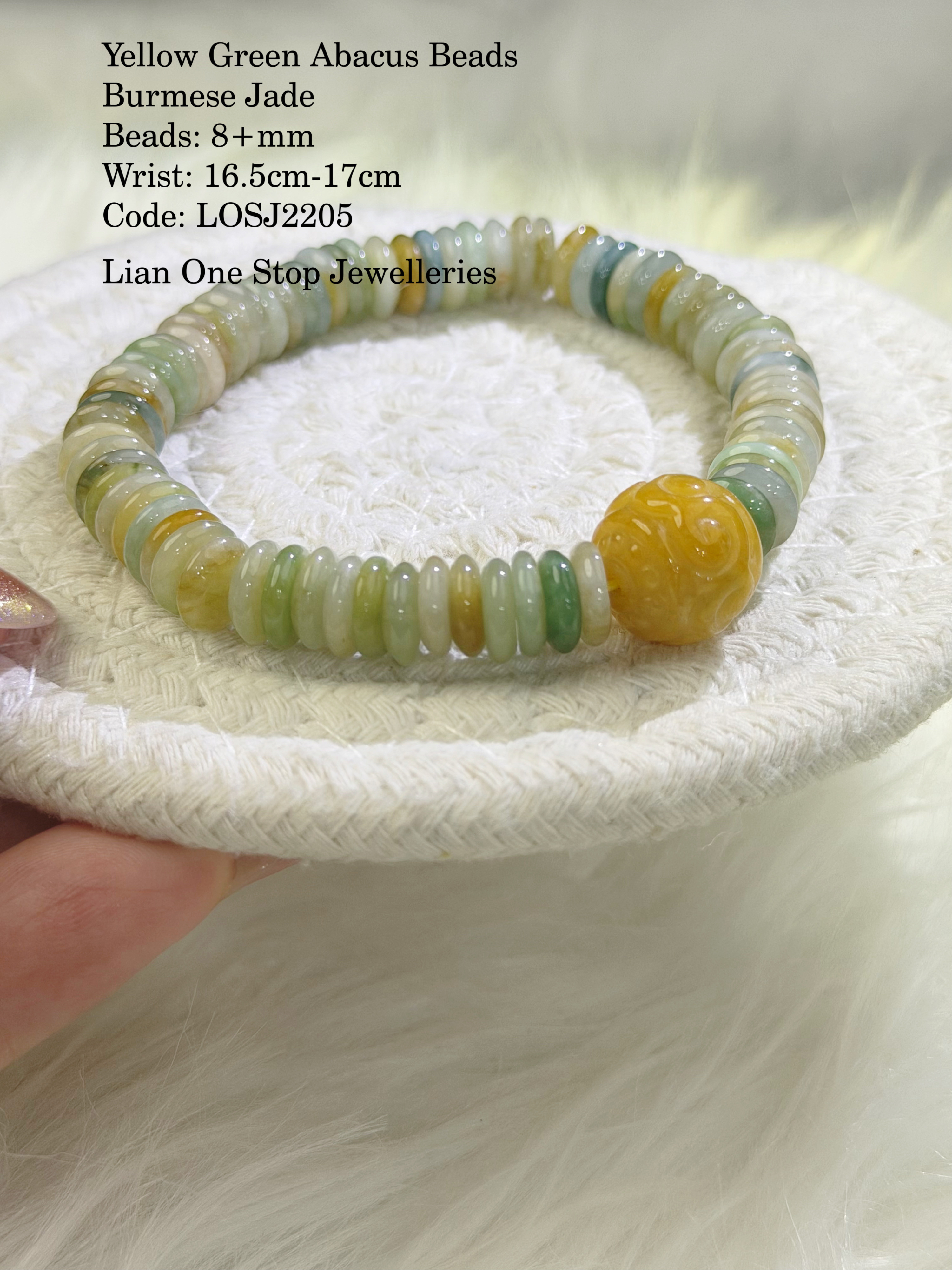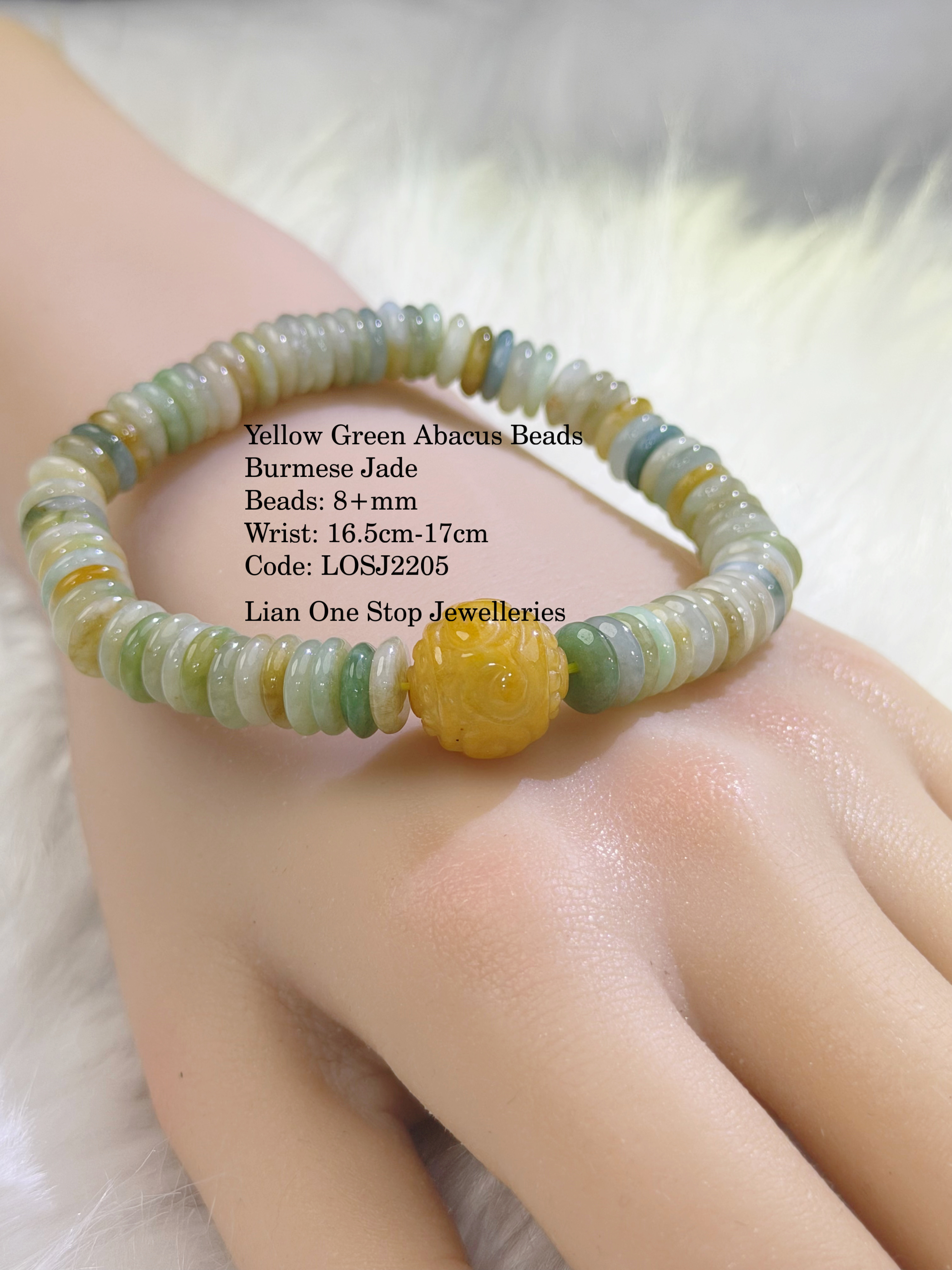 Yellow Green Abacus Beads Burmese Jade Beads: 8+mm Wrist: 16.5cm-17cm Code: LOSJ2205