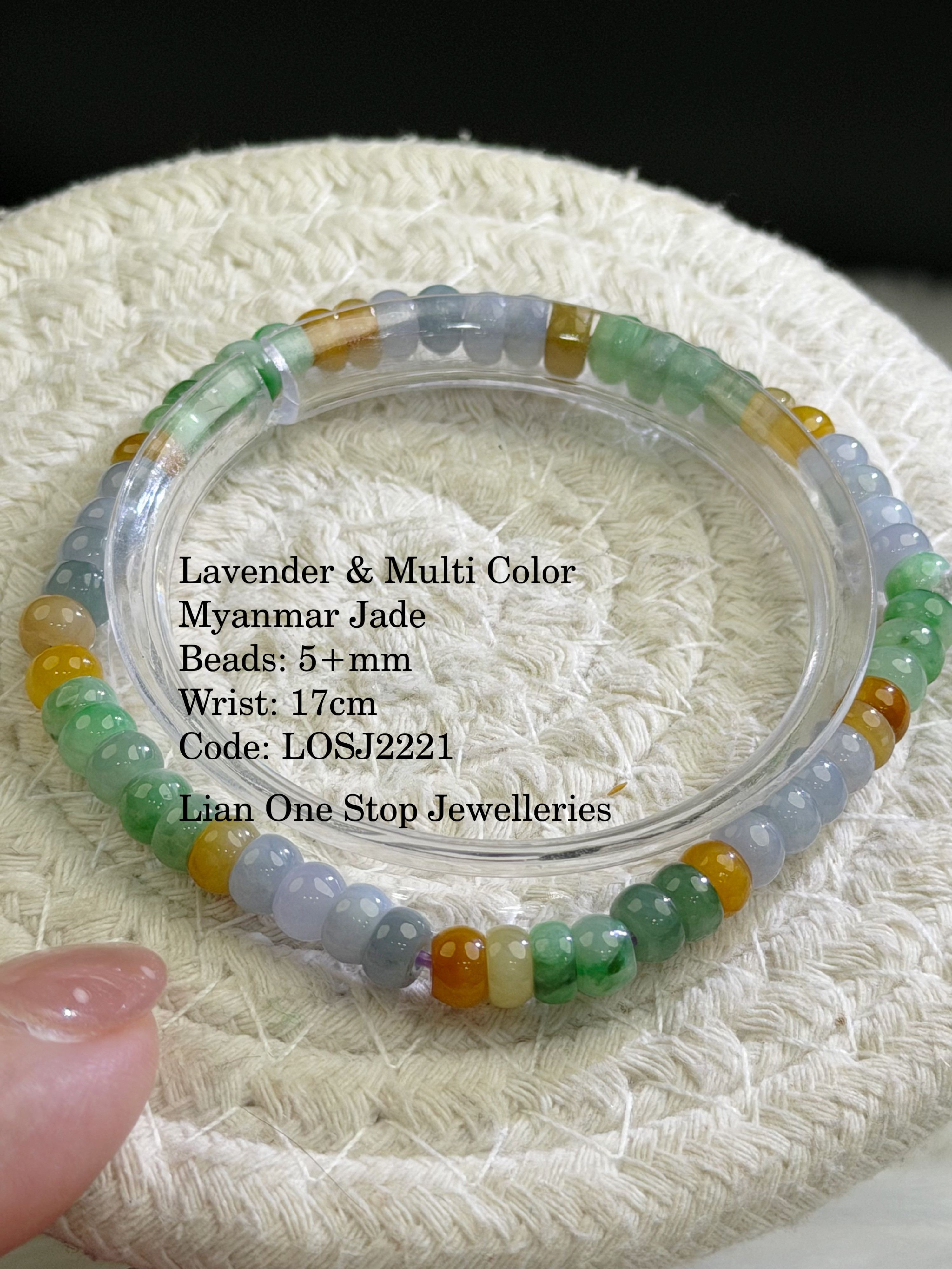Lavender & Multi Color Myanmar Jade Beads: 5+mm Wrist: 17cm Code: LOSJ2221