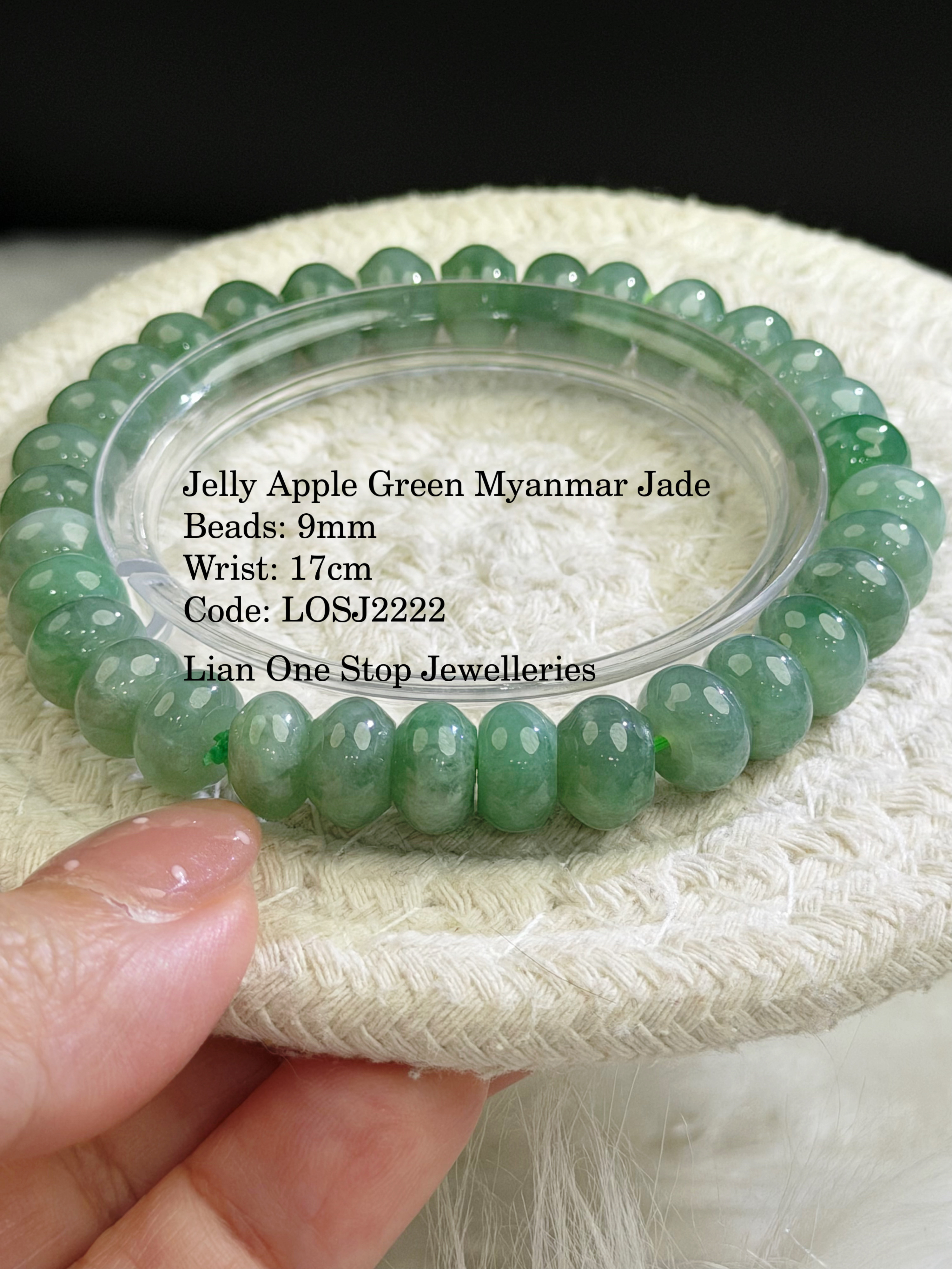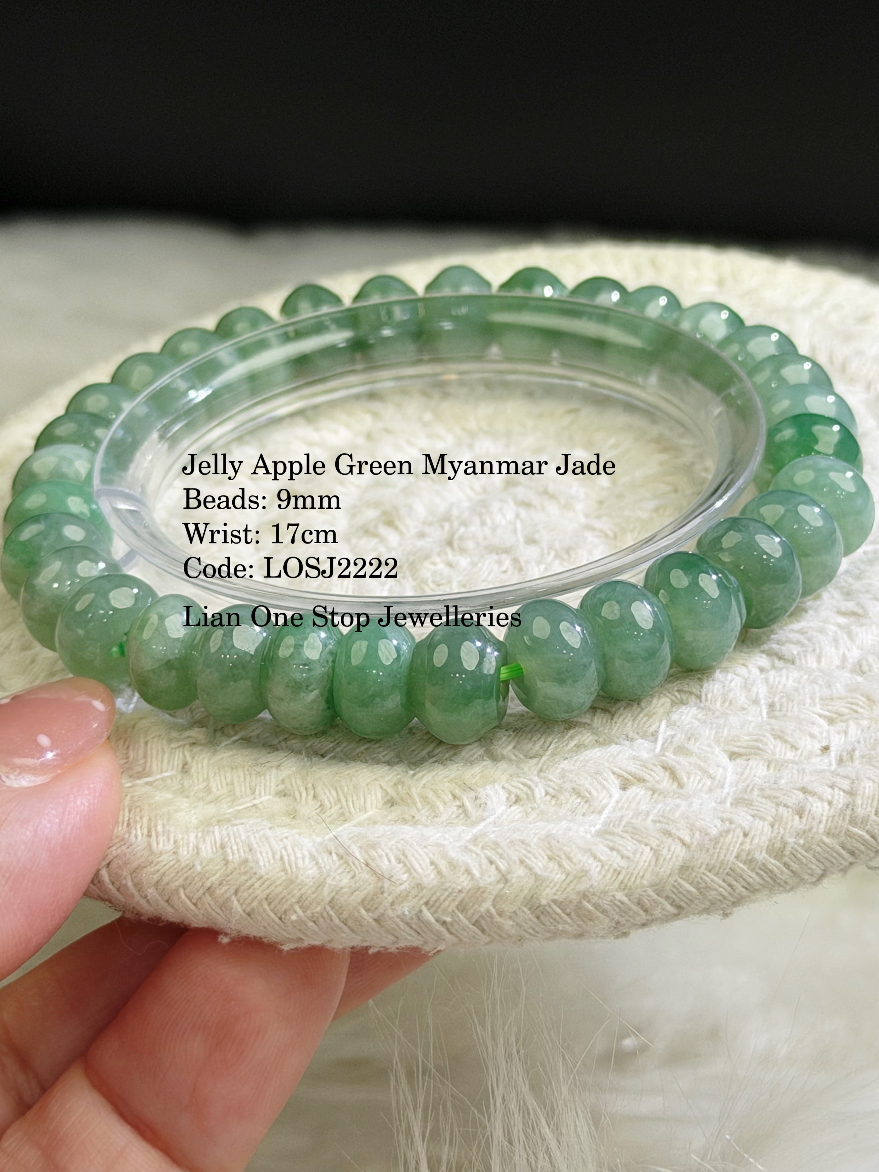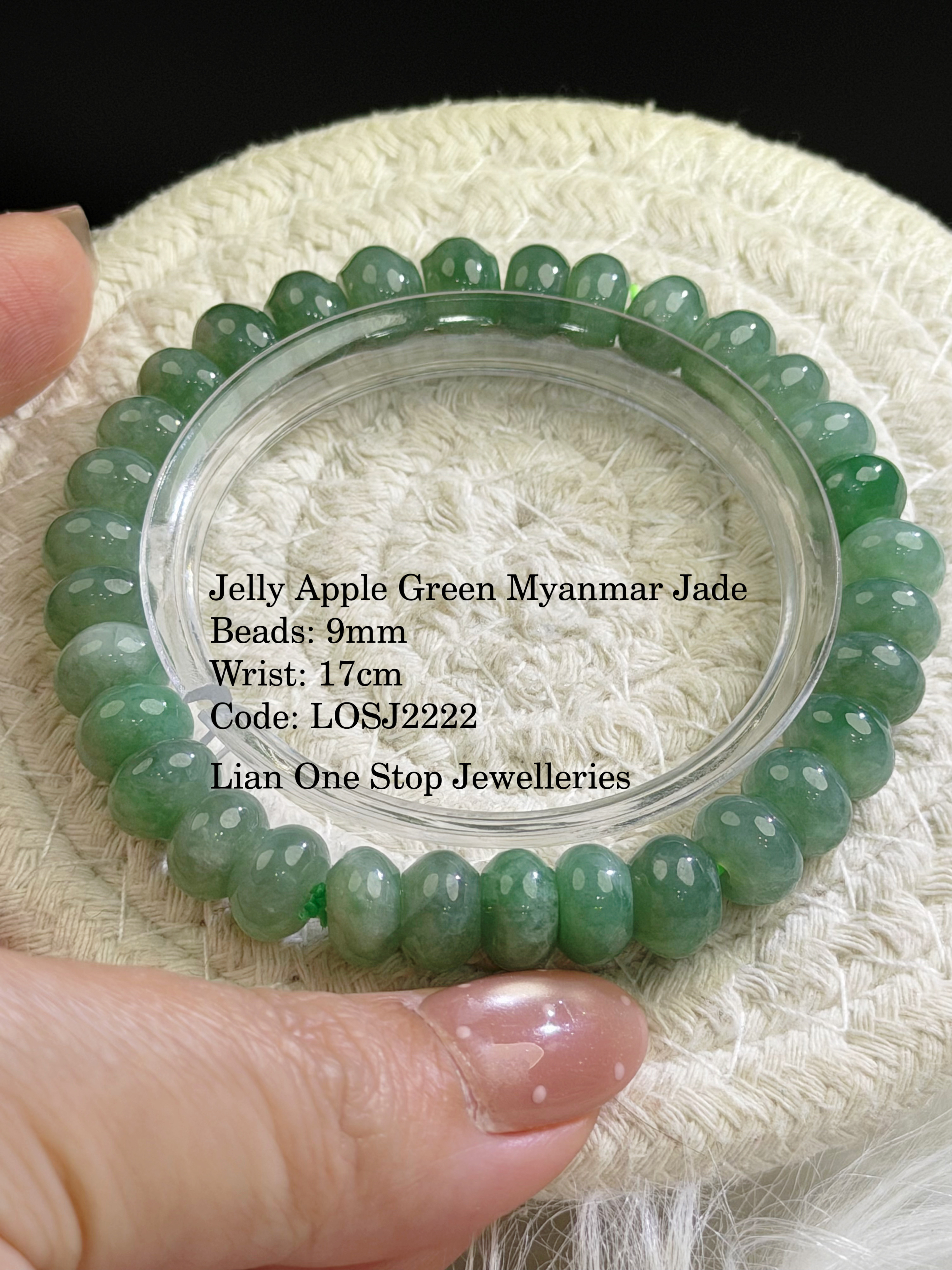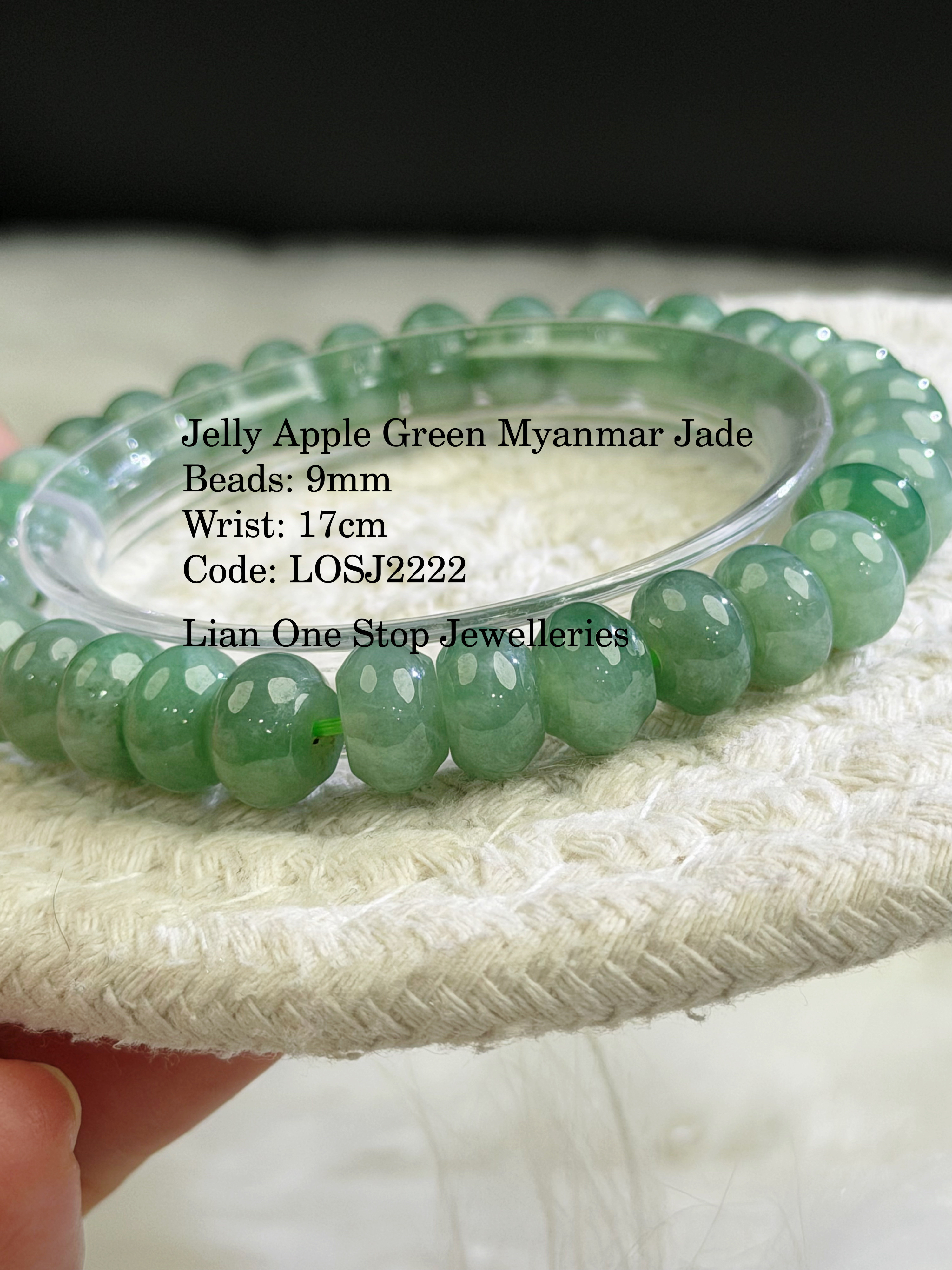 Jelly Apple Green Myanmar Jade Beads: 9mm Wrist: 17cm Code: LOSJ2222